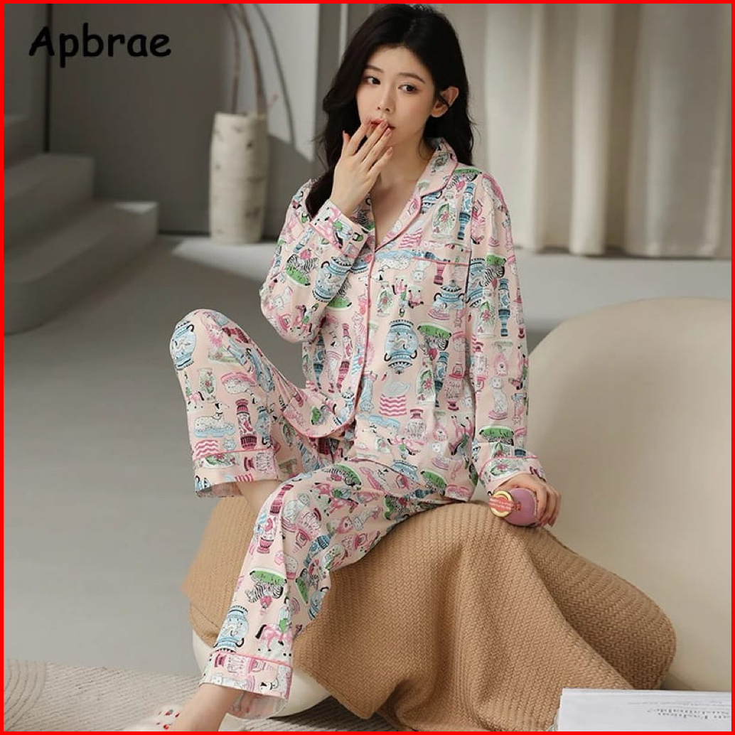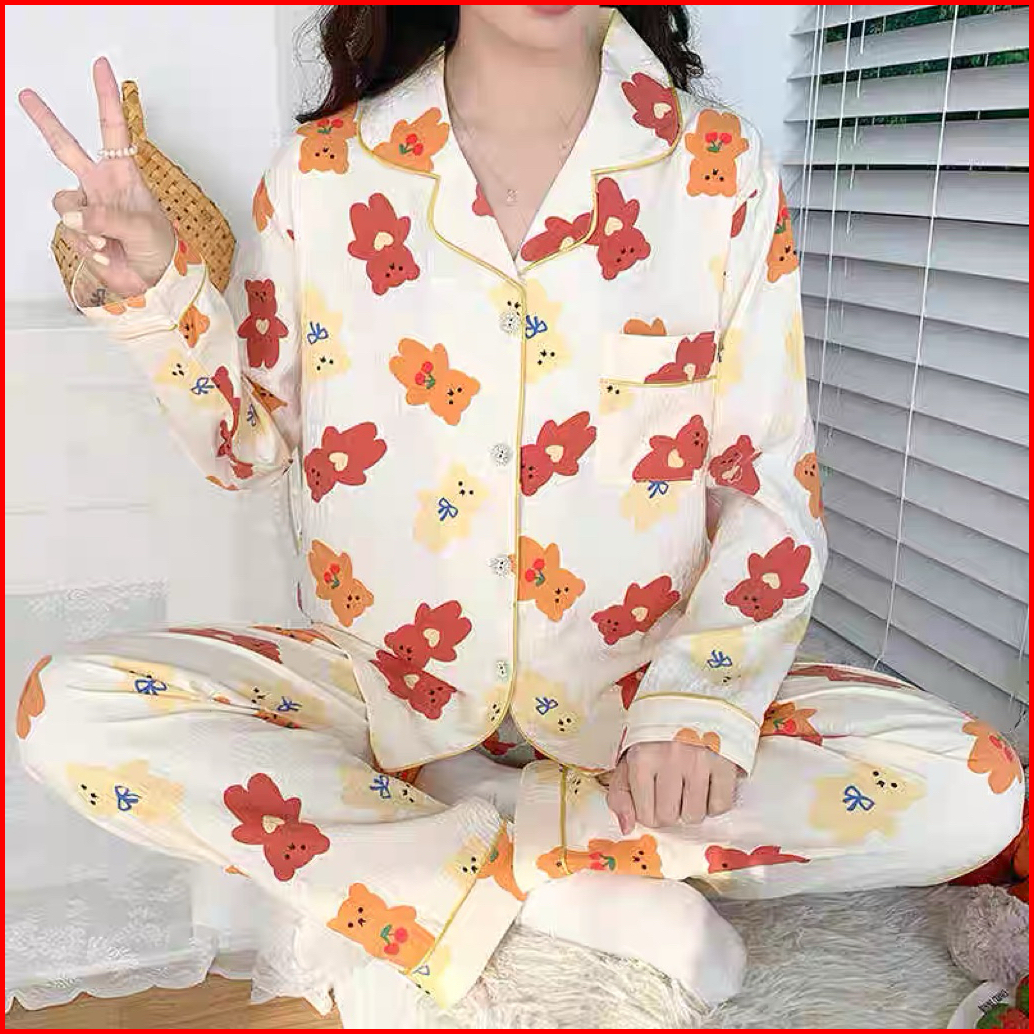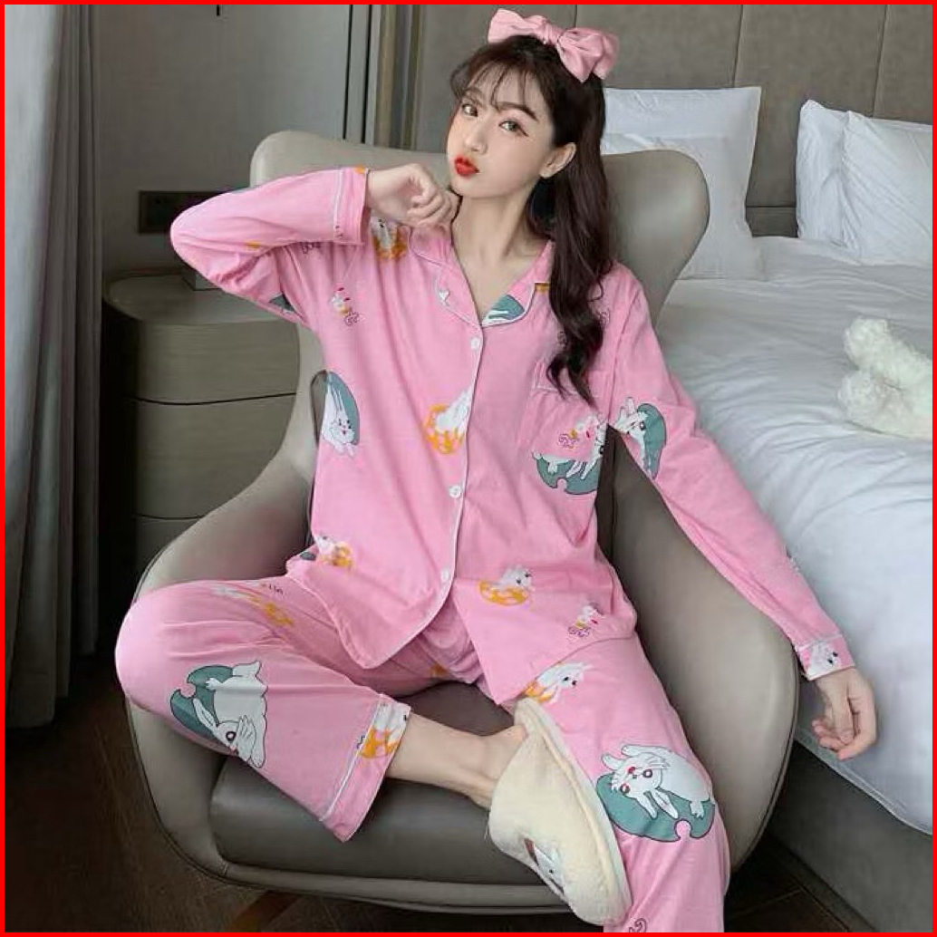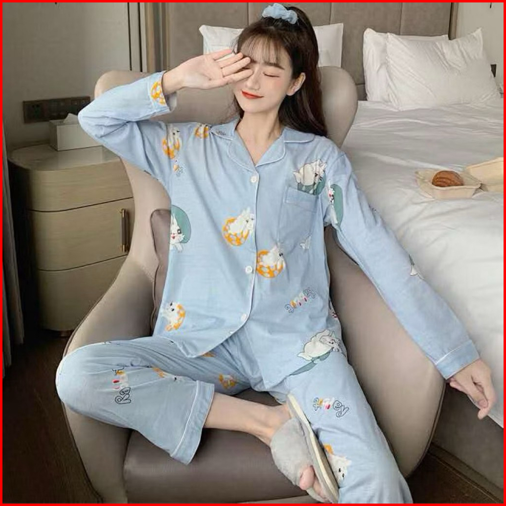 Vivifashionsby Piyama Setelan Baju Tidur Wanita Dewasa Remaja Cotton Organic Baju Tidur Lengan Panjang