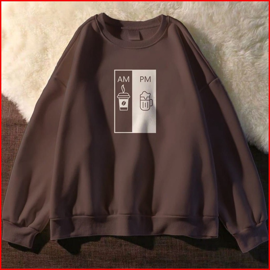 Am Pm Sweater Wanita Crewneck Oversize Casual Vintage