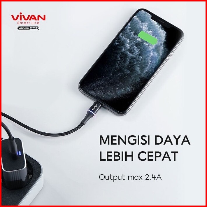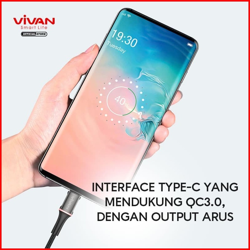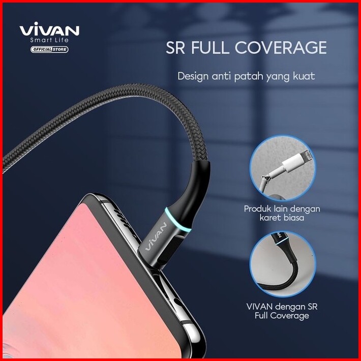 Vivan Kabel Data Vdc Data Cable Usb Type-c 3a 100cm 200cm Led Light Quick Charge - Garansi Original Resmi