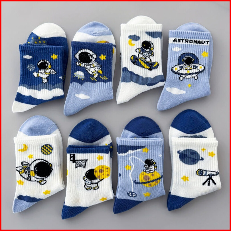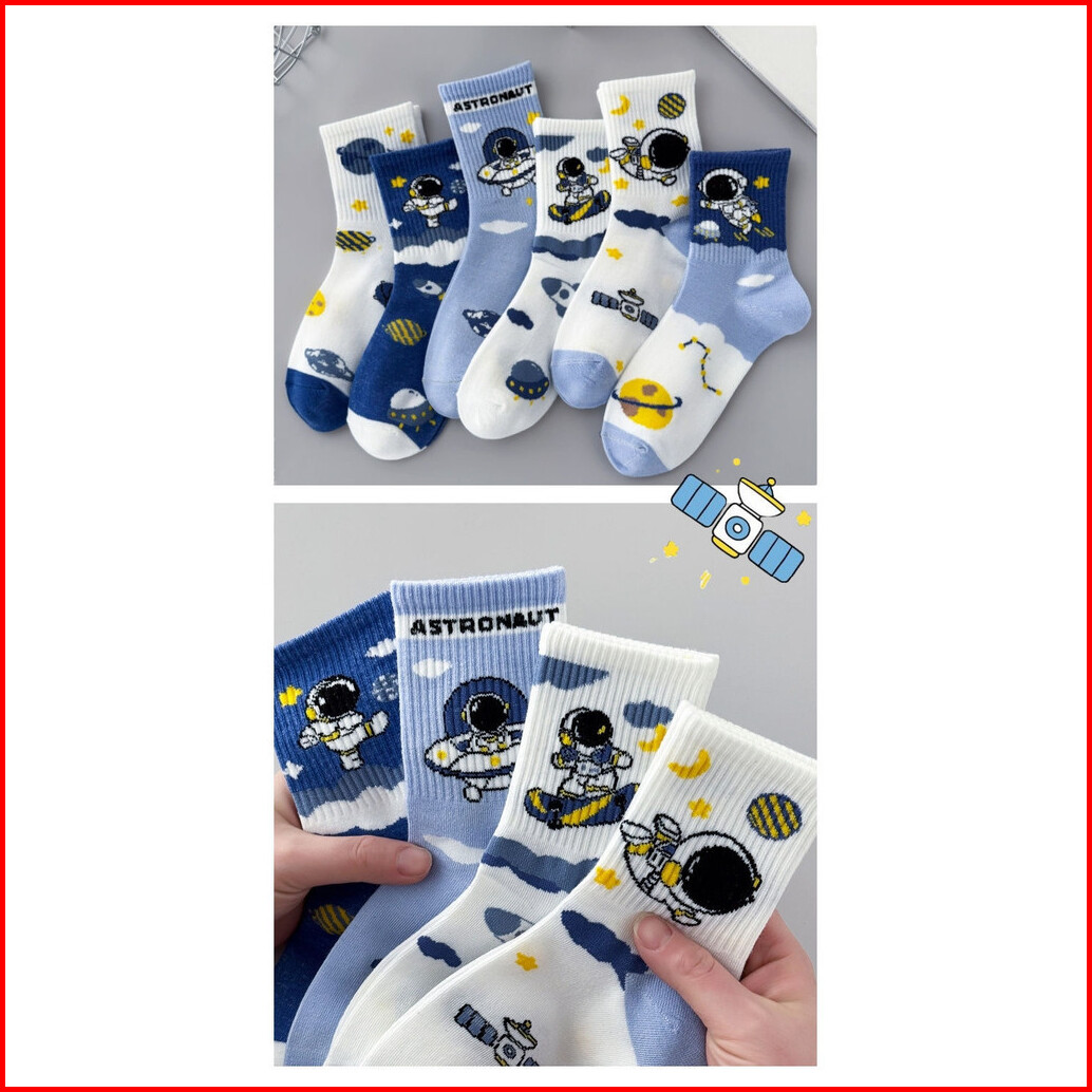 Devica 4pasang Kaos Kaki Anak Laki-laki Motif Astronot Premium Import Lucu Nyaman Lembut Usia 4-8 Tahun