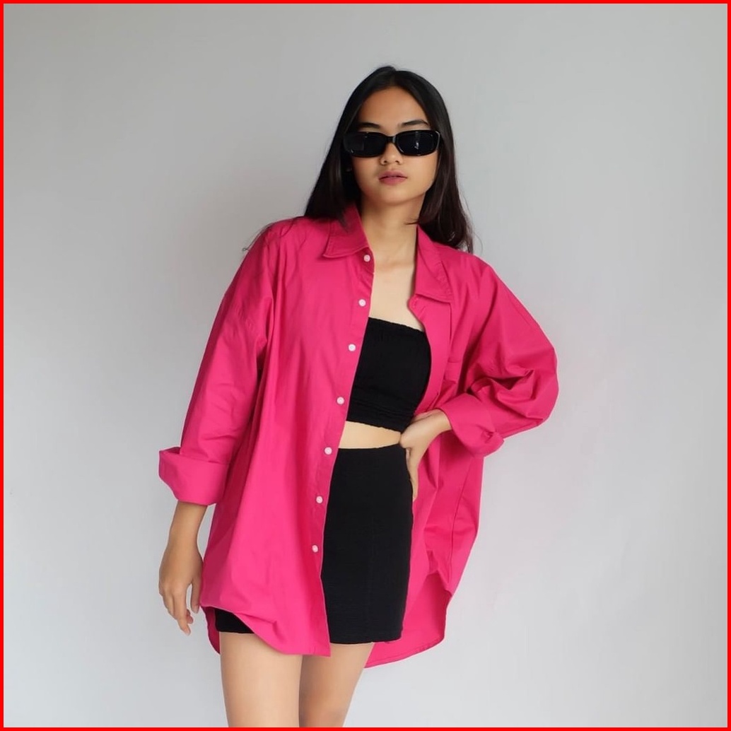Olivia Shirt - Kemeja Oversize Wanita Linen Fuschia Korean Style Xxl Polos Pocket Shirt Atasan Wanita Zayida