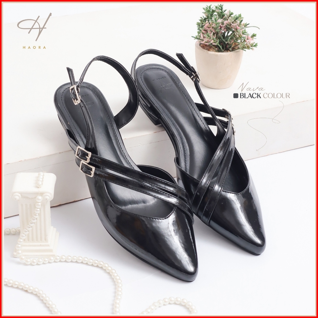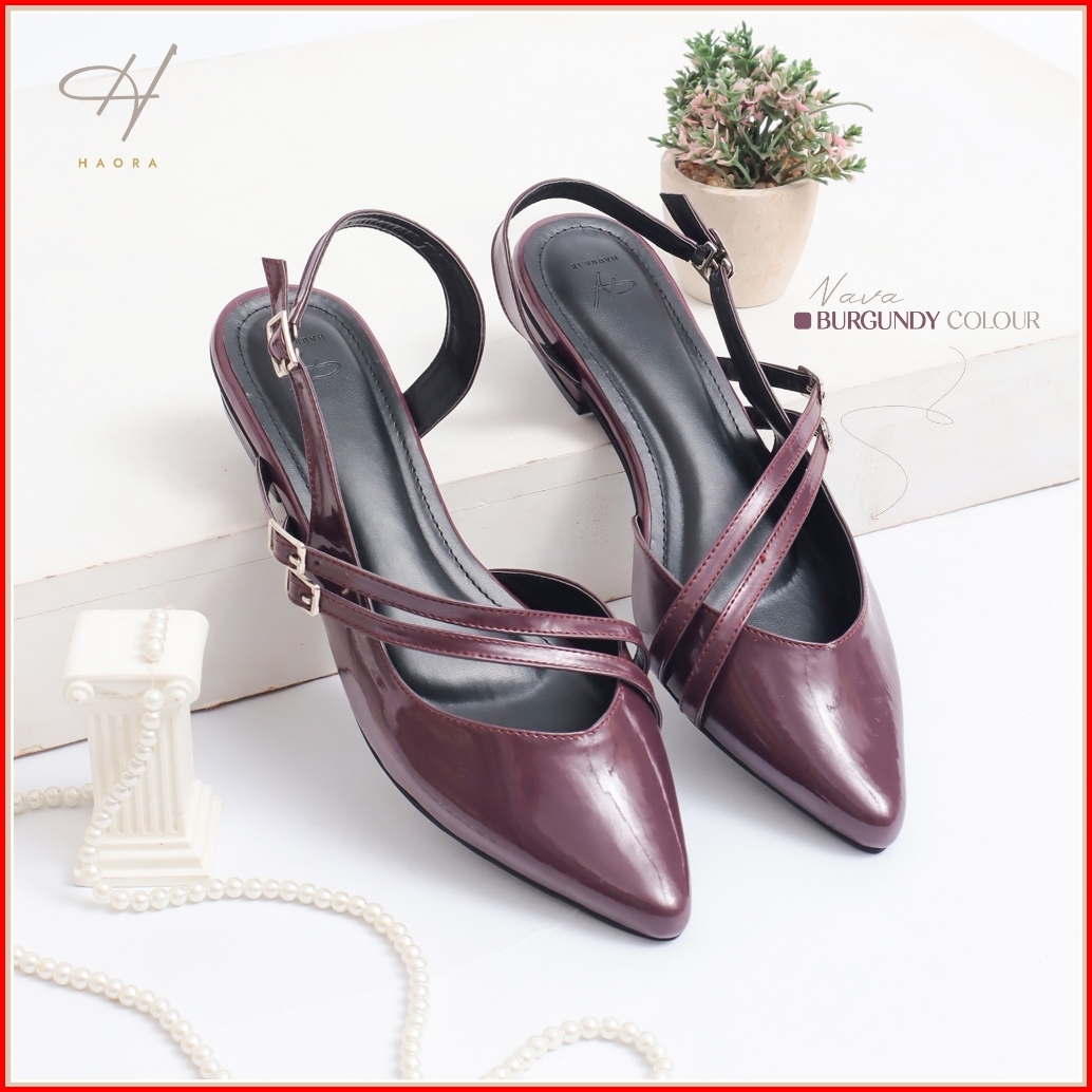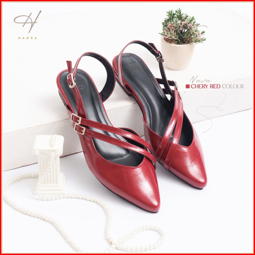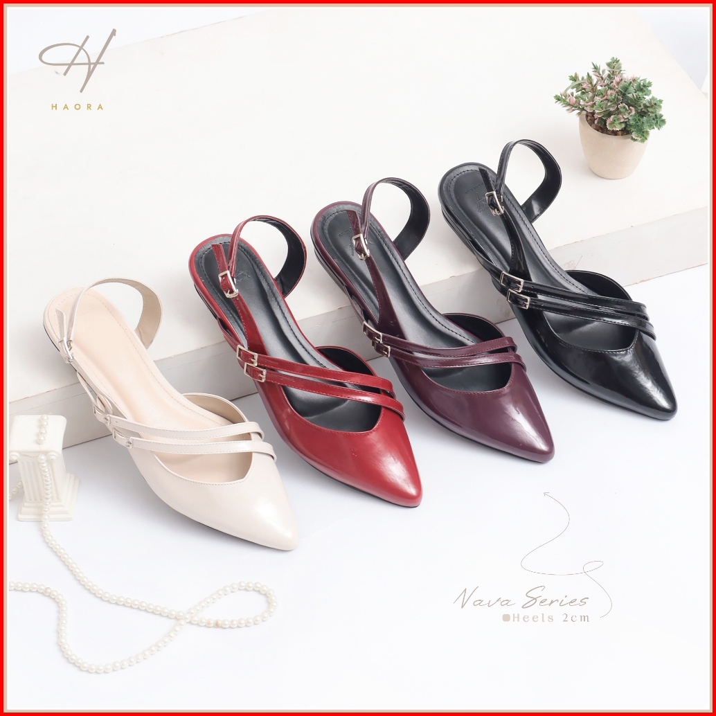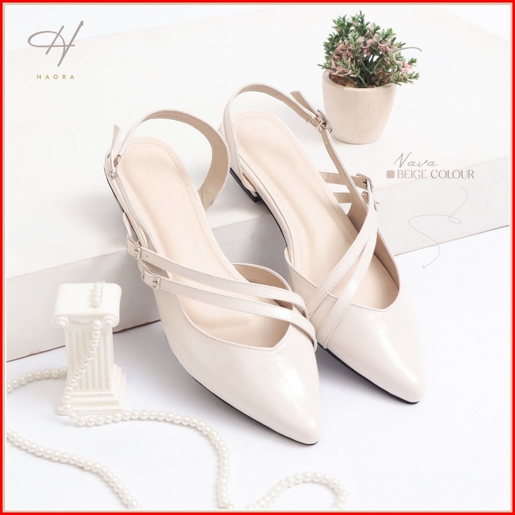 Haora Flamela Sandal Mules Wanita Hak 2cm Kulit Sintetis Elegan Model Sepatu Balet Wanita - Tl01