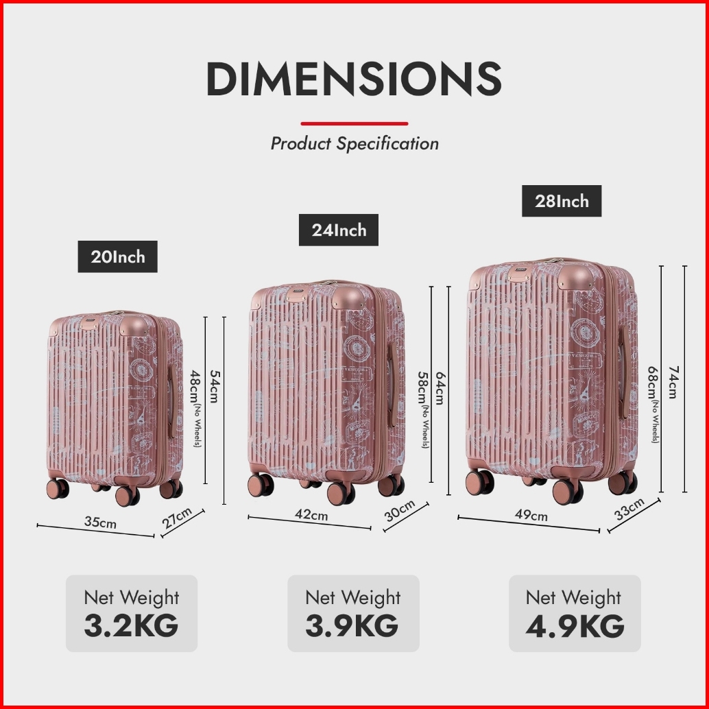 Roaming Koper Kabin Dan Bagasi Estetik Passport Stamp Series Size 20-28 Inch - L039
