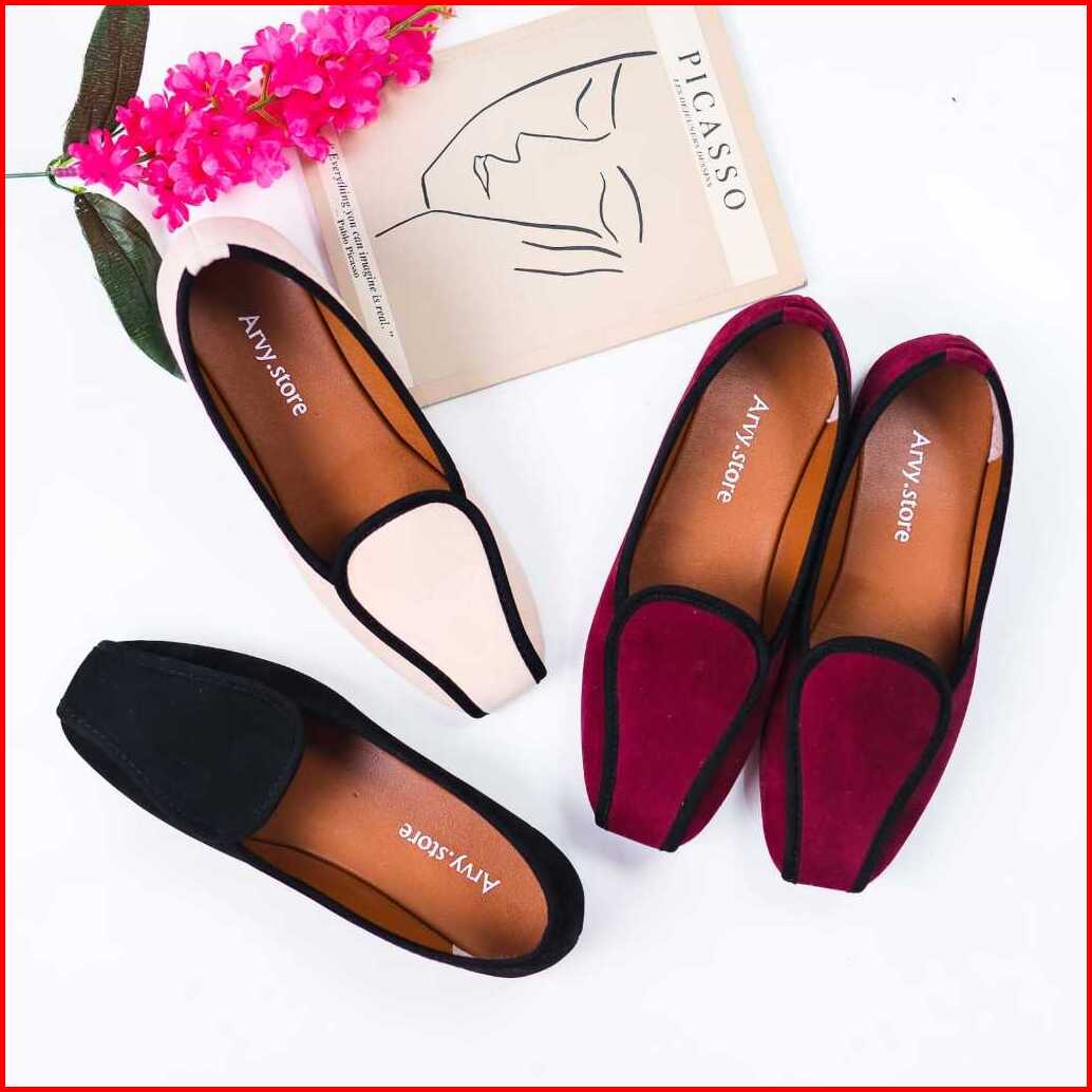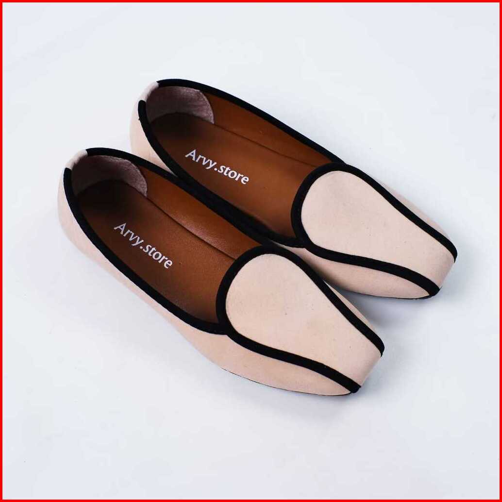 Arvy Sepatu Flatshoes Wanita Motif Garis Kotak