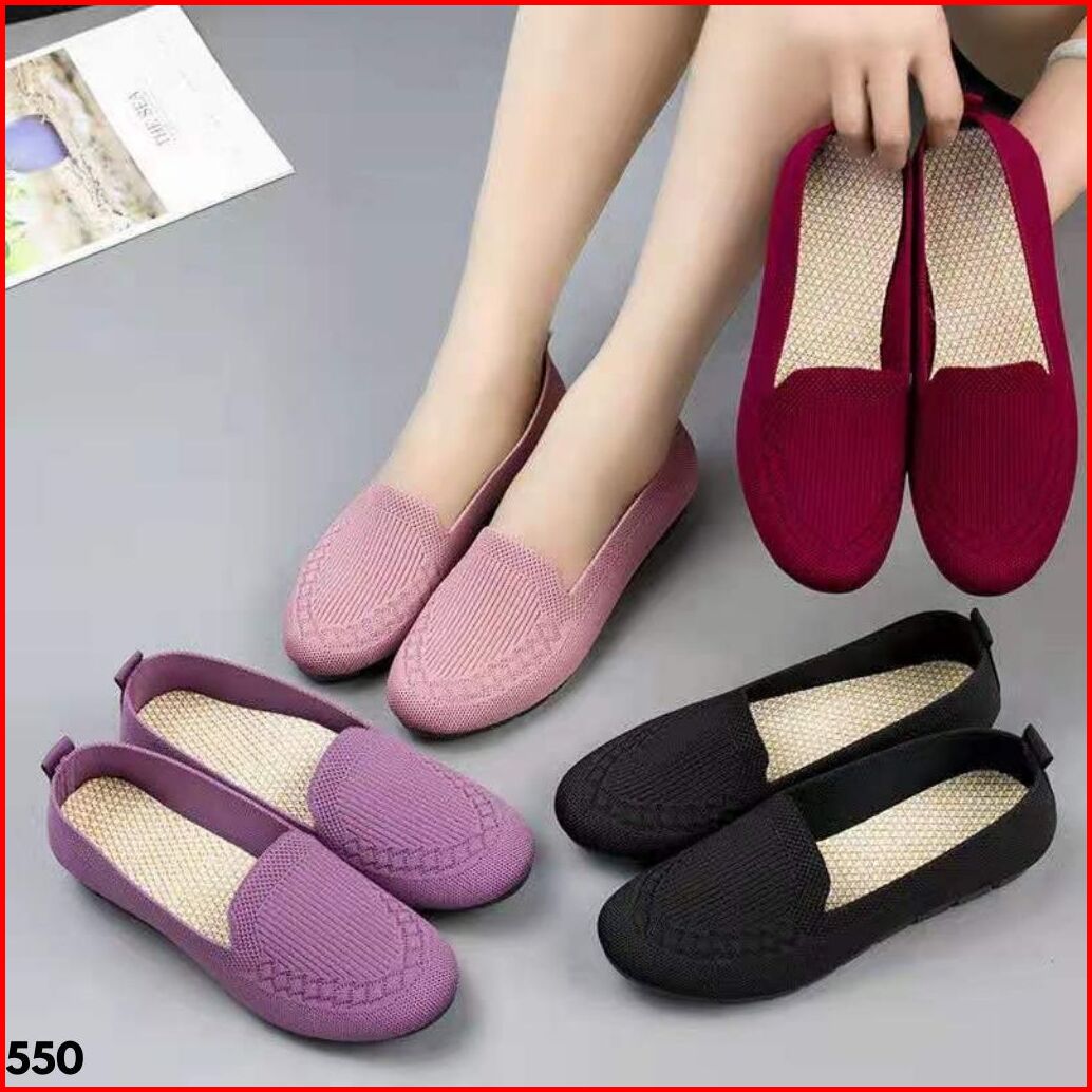 Findme 36-40 Sepatu Wanita Model Flatshoes Simple Praktis Cantik Kekinian Elastis Bahan Flyknit 550