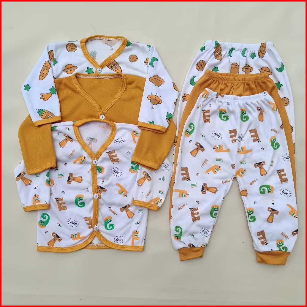 Promo 6pcs 3stel Baju Bayi Lengan Panjang 0-6 Bulan Seri Denim 3 Stel Baju Bayi Laki Laki Perempuan Lengan Panjang Newbo
