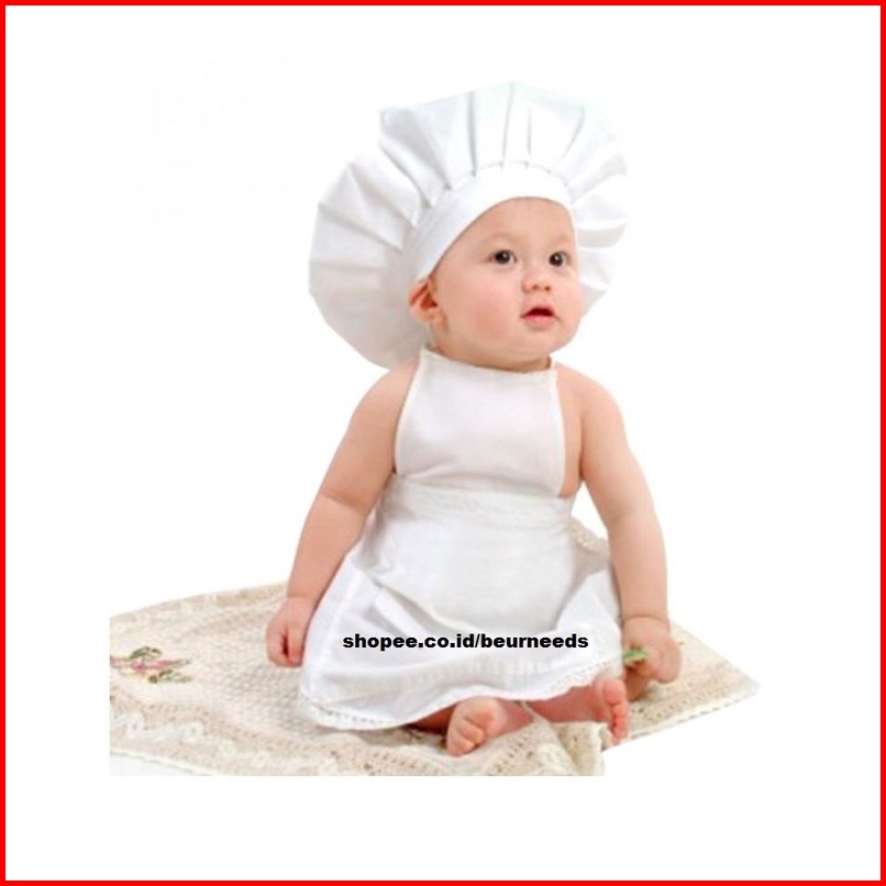 Termurah Apron Bayi Newborn Celemek Babyborn Besar Baju Koki Foto Bayi Celemek Plus Topi Koki Bayi