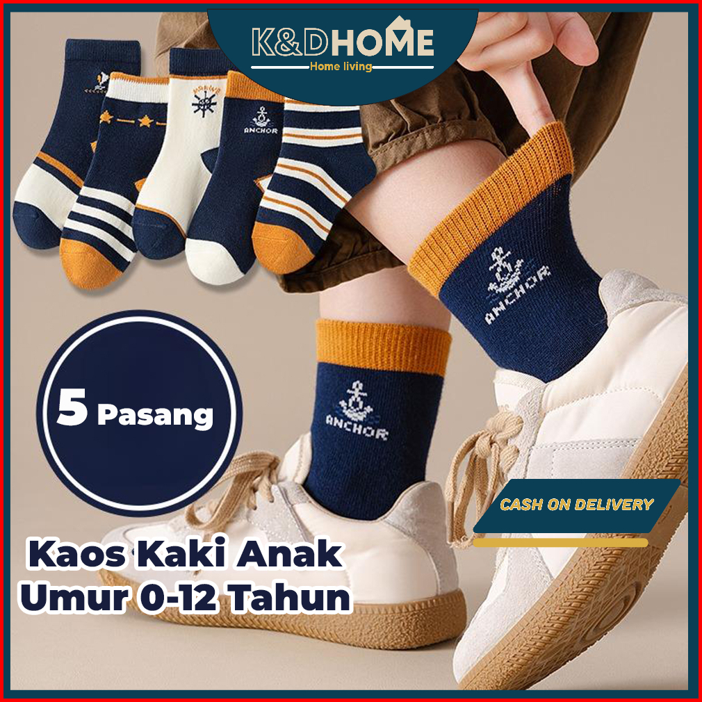 Kiddy 5 Pasang Kaos Kaki Anak Laki-laki Motif Kartun Baru Olahraga Katun Grade A Lembut 1 12 Tahun