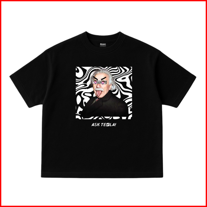 Starhaven Spacework - T-shirt Boxy Kaos Pria Wanita Oversize Motif Ask Tesla