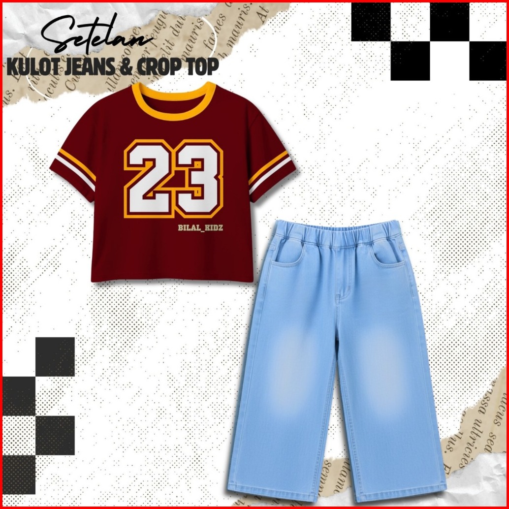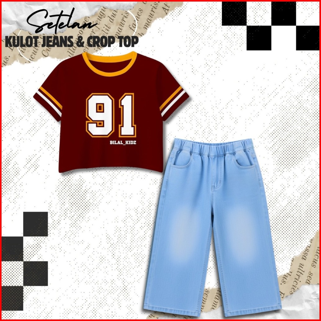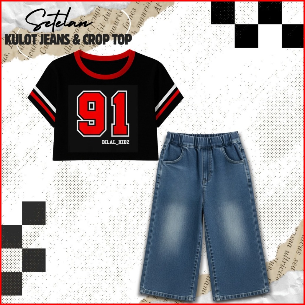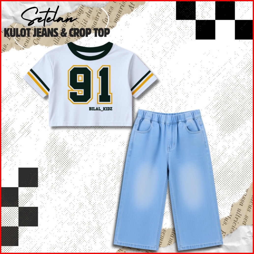 Setelan Kaos Crop Dan Kulot Jeans Polos Anak Perempuan Outfit Ootd Anak Korean Style