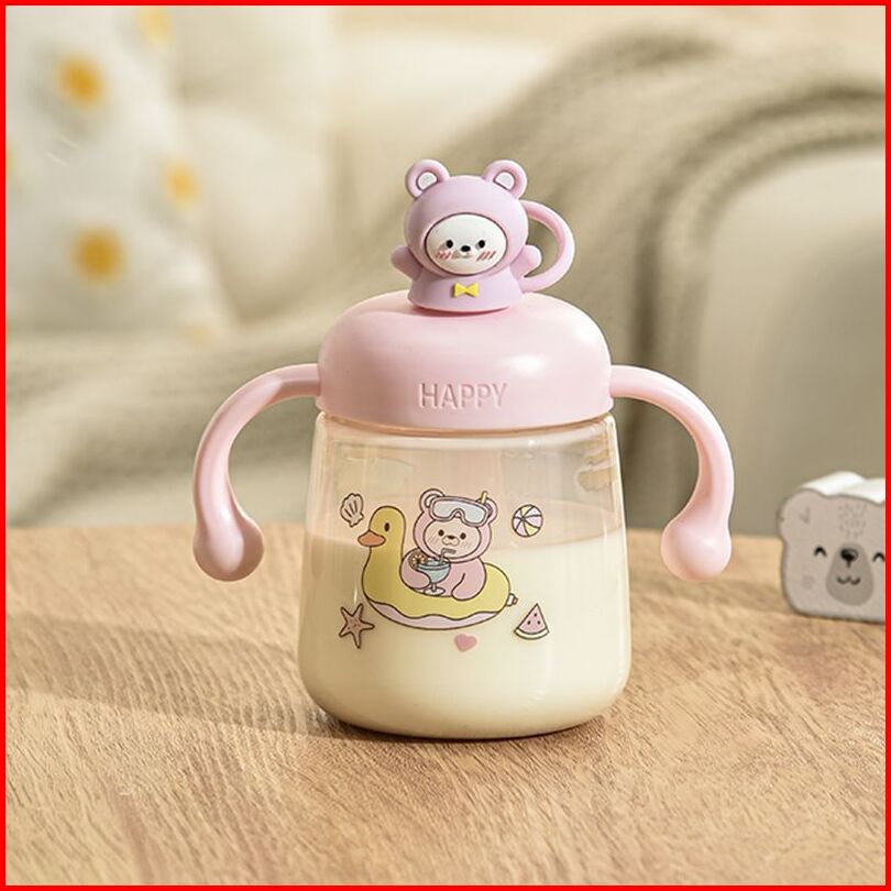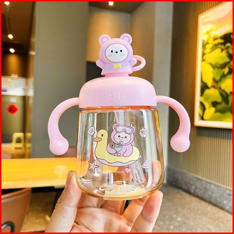 M.c Gelas Botol Minum Anak Karakter Boneka Beruang 350ml Botol Bayi Baby Training Cup Dengan Sedotan Dan Gagang B 2387