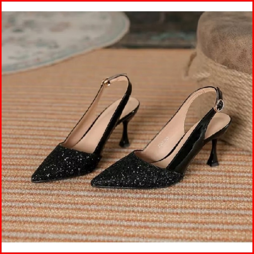 Mnstore Sepatu Heels Wanita Runcing Tali Belakang Hak 7cm
