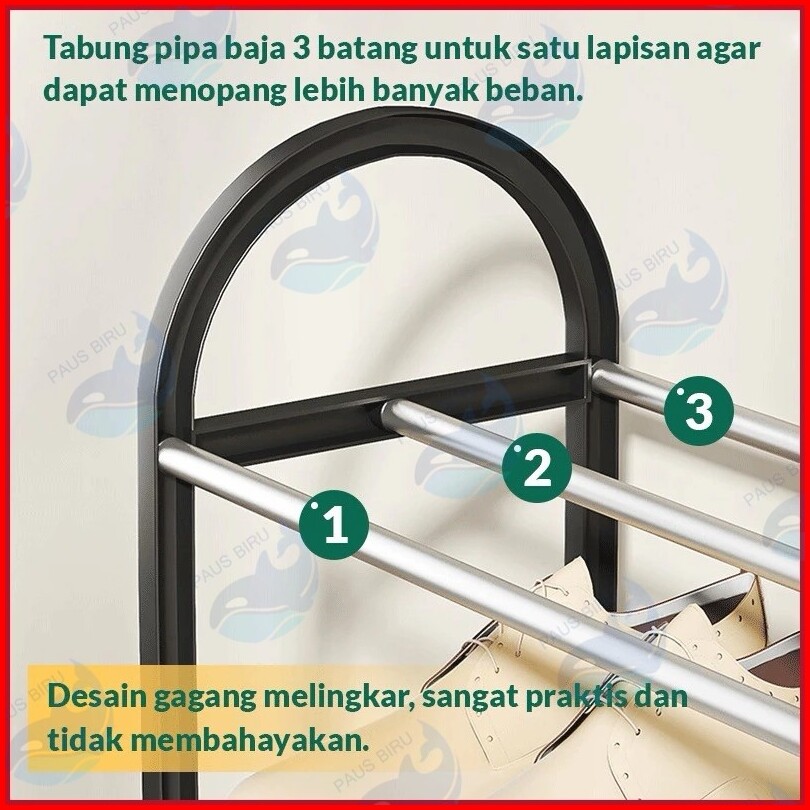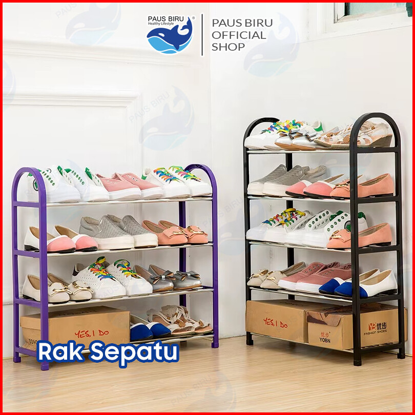 Paus Biru - Rak Sepatu 4 5 Tingkat Susun Plastik Serbaguna Aesthetic Bongkar Pasang Mudah