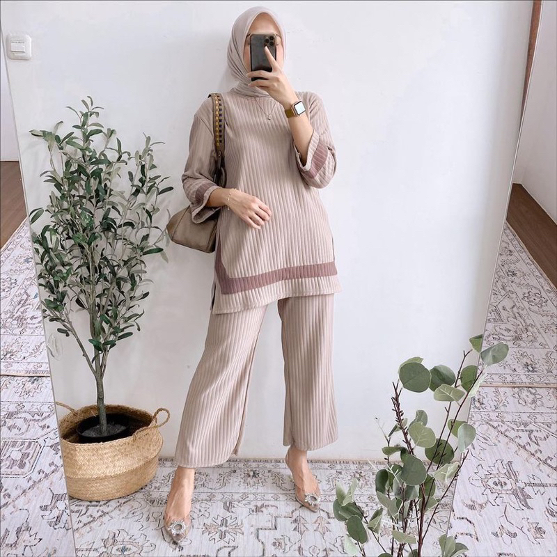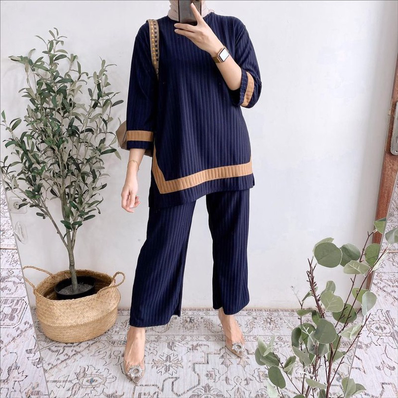 Setelan One Set Knit Hornet Wanita Premium Terbaru Viral Kekinian - Amira Set