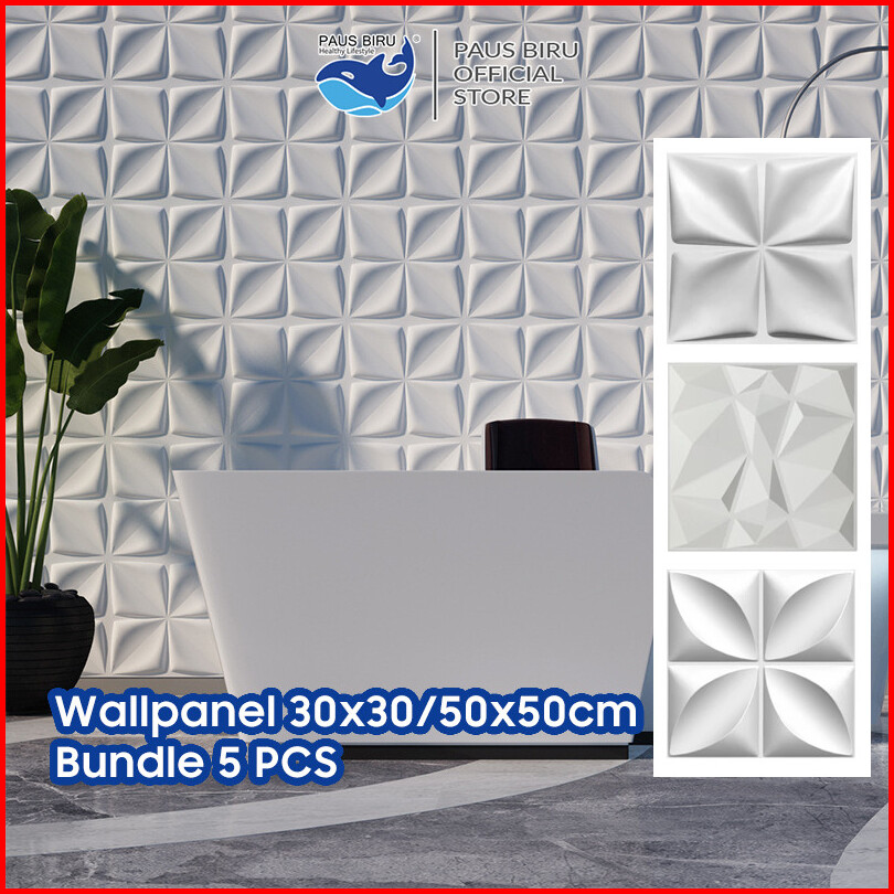 Paus Biru - Paket Isi 5 Pcs Wall Panel 3d Pvc Wallpaper Dinding Wallpanel 50x50cm 30x30cm A13
