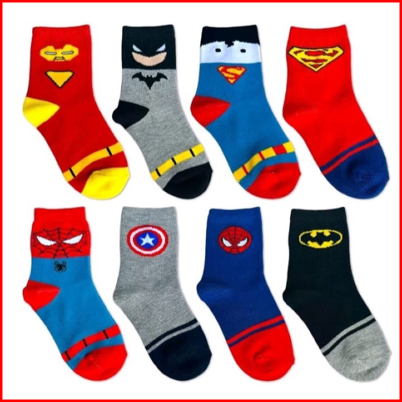Paket 6 12 Pasang Kaos Kaki Anak Cewe Cowo Paud Tk Sd Panjang Sebetis Motif Super Hero Nyaman Lucu