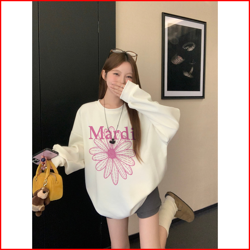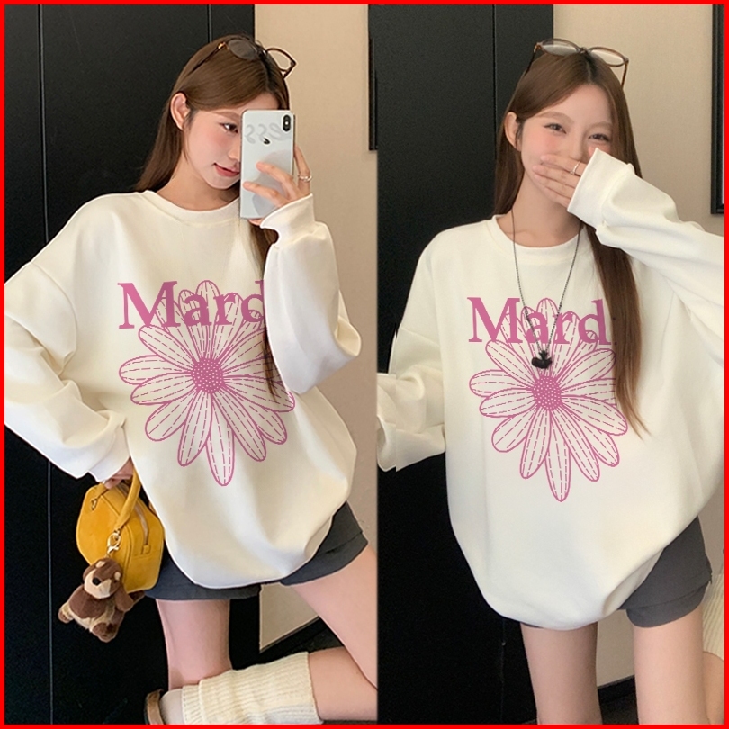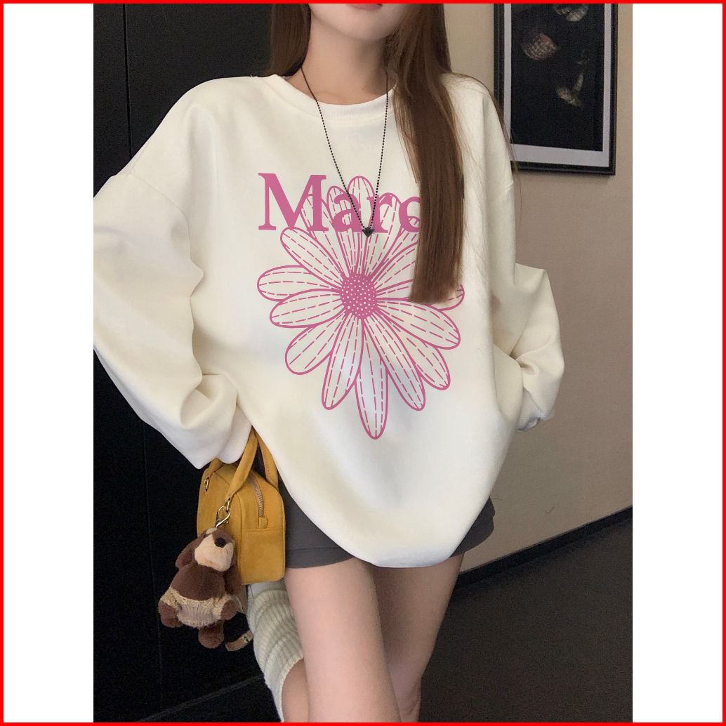 Sweater Oversize Wanita Lengan Panjang Versi Korea Cetakan Pink Daisy Baju Sweater Wanita Korean Style Letter Print Loos