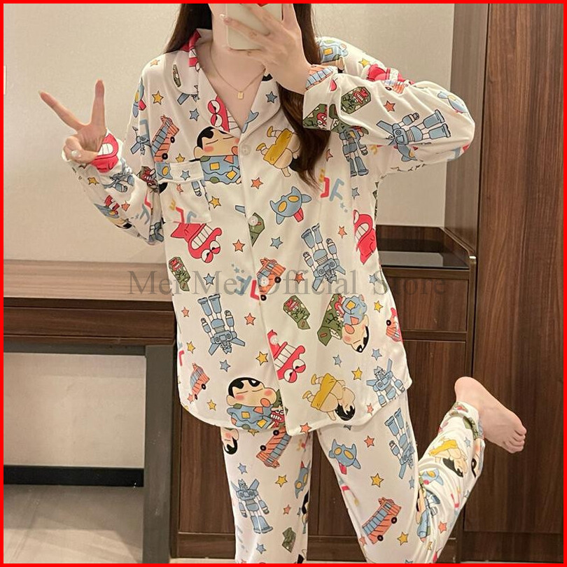 Mei Mei Sleepwear Piyama Tidur Set Lengan Panjang Piyama Hijabers Baju Tidur Couple Et3
