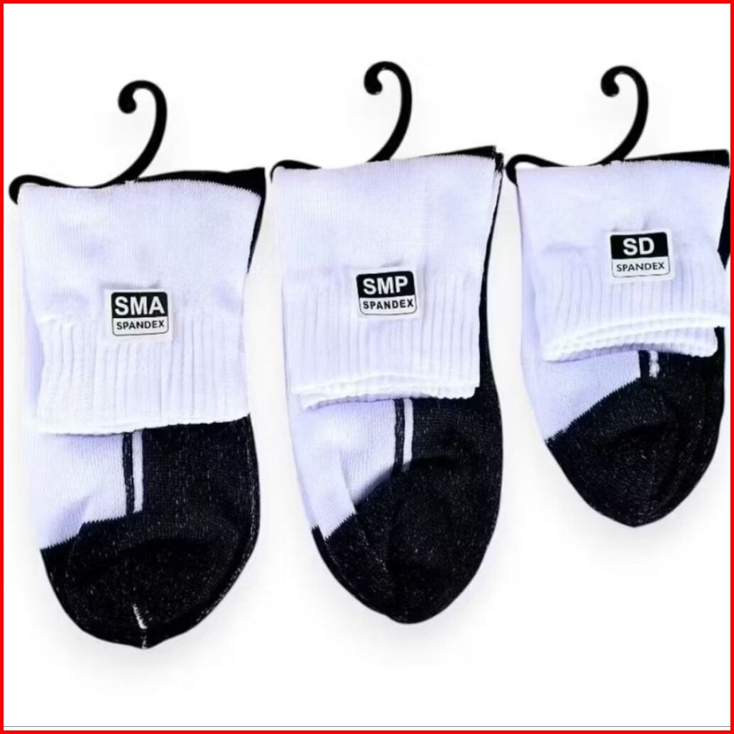 12 Pasang Kaos Kaki Pendek Sekolah Sd Smp Sma - Hitam Putih