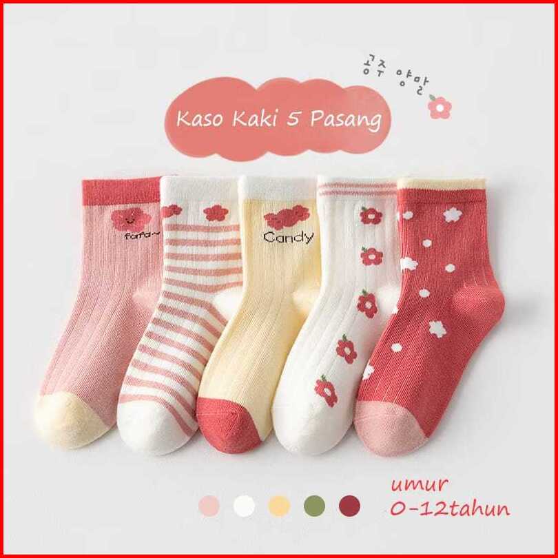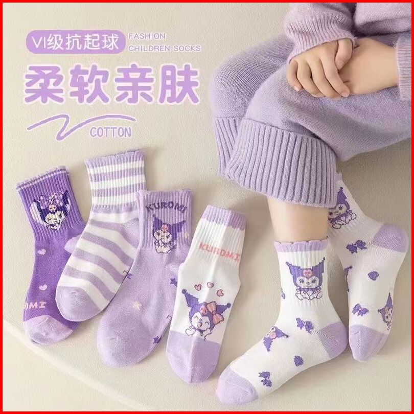 5pasang Kaos Kaki Anak Perempuan Pendek Motif Bunga Bunny Lotso Kuromi Umur 3 4 5 6 7 8 Tahun