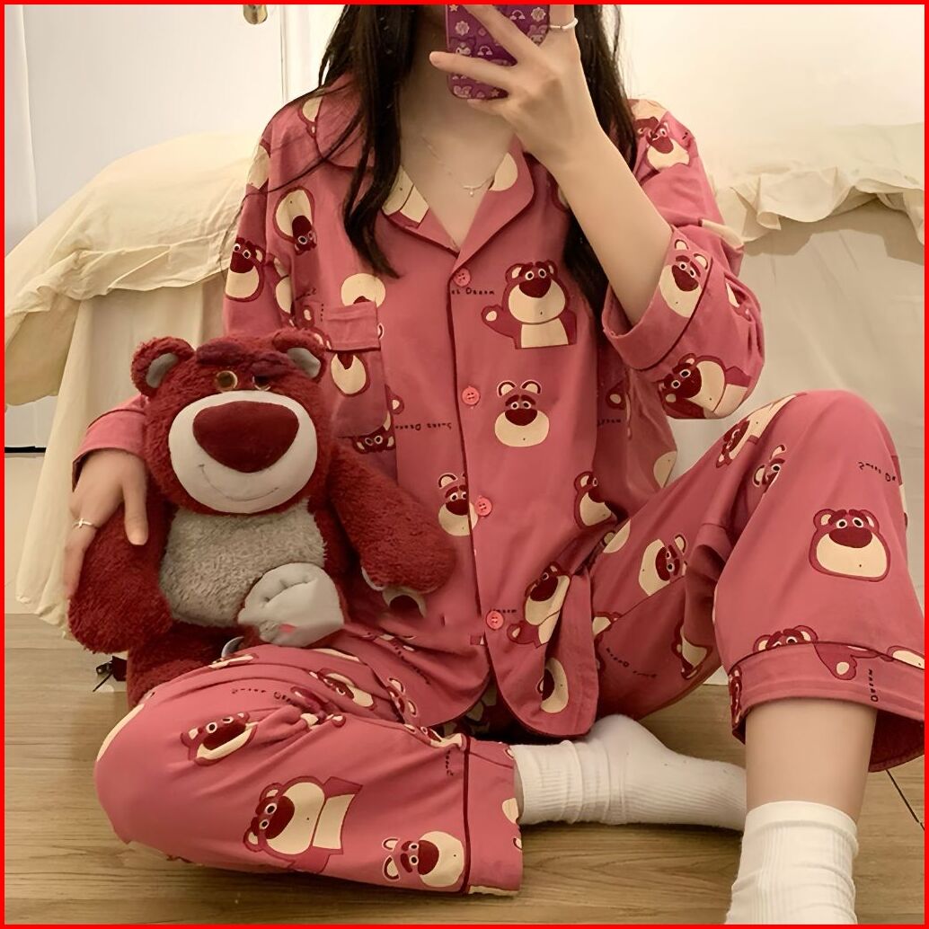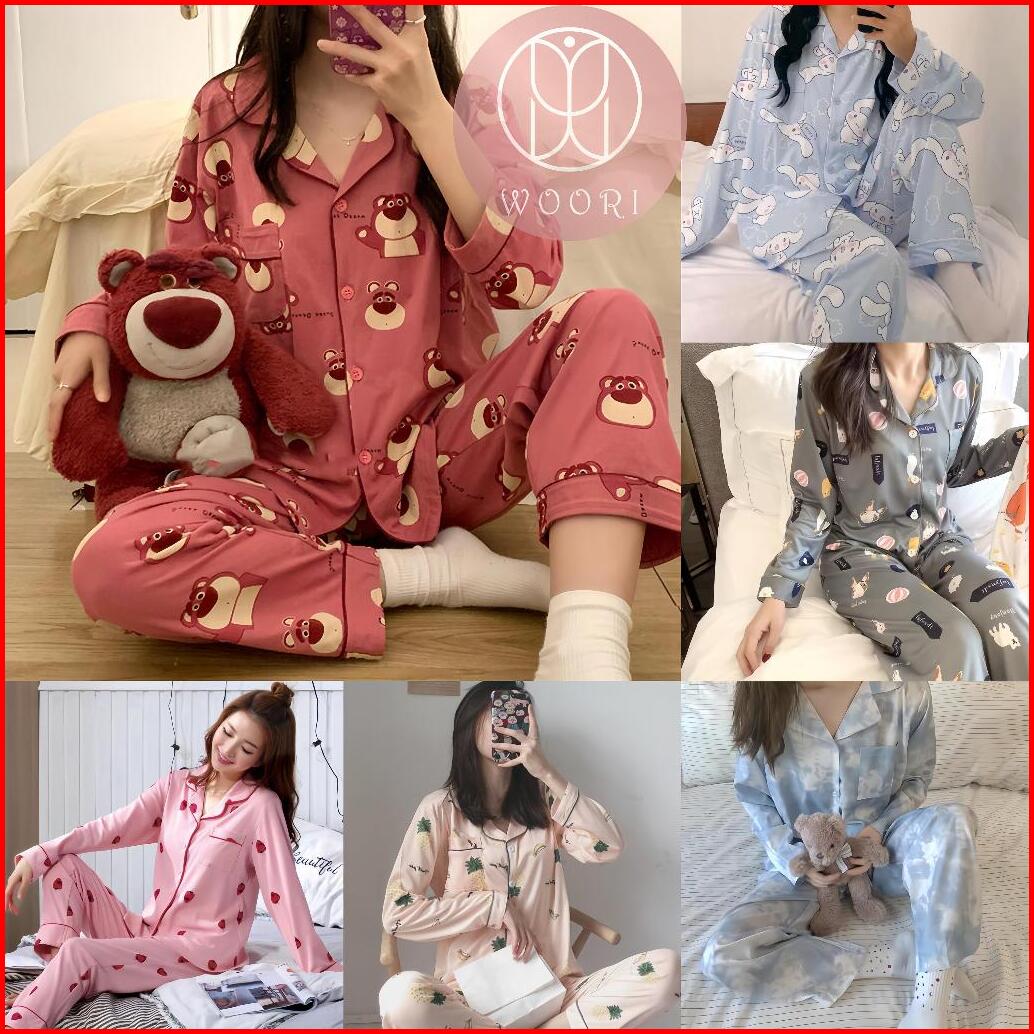 Woori Baju Tidur Wanita Dewasa Piyama Wanita Set Baju Piyama Set Lengan Panjang