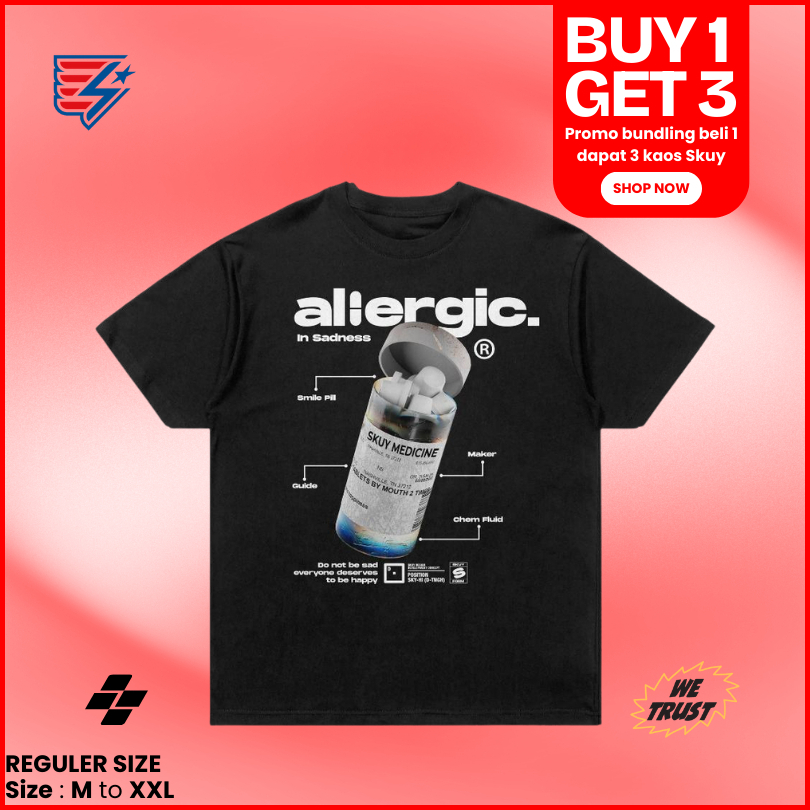 Skuy Buy 1 Get 3 - Kaos Skuy Dewasa Lengan Pendek Pria Baju Oblong Bahan Katun Combed 24s Alergic In Sadness Sky314-h Gl