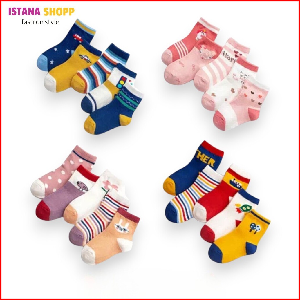 Paket 5 Pasang Kaos Kaki Bayi Anak-anak Motif Karakter Pria Dan Wanita Lucu
