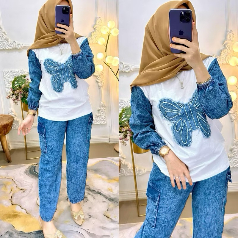 Oneset Jeans kulot wanita, Setelan Celana Wanita, Atasan Combed 24s Bordil, Celana Kulot Cargo, Setelan Celana Wanita Kekinian