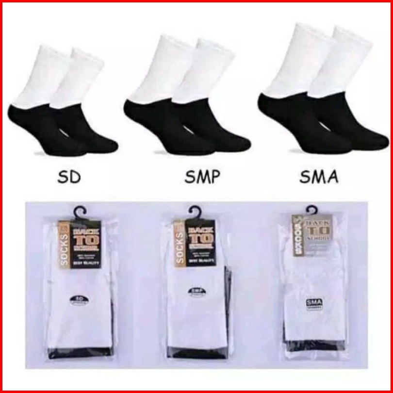 Isi 6pasang Kaos Kaki Sekolah Hitam Putih