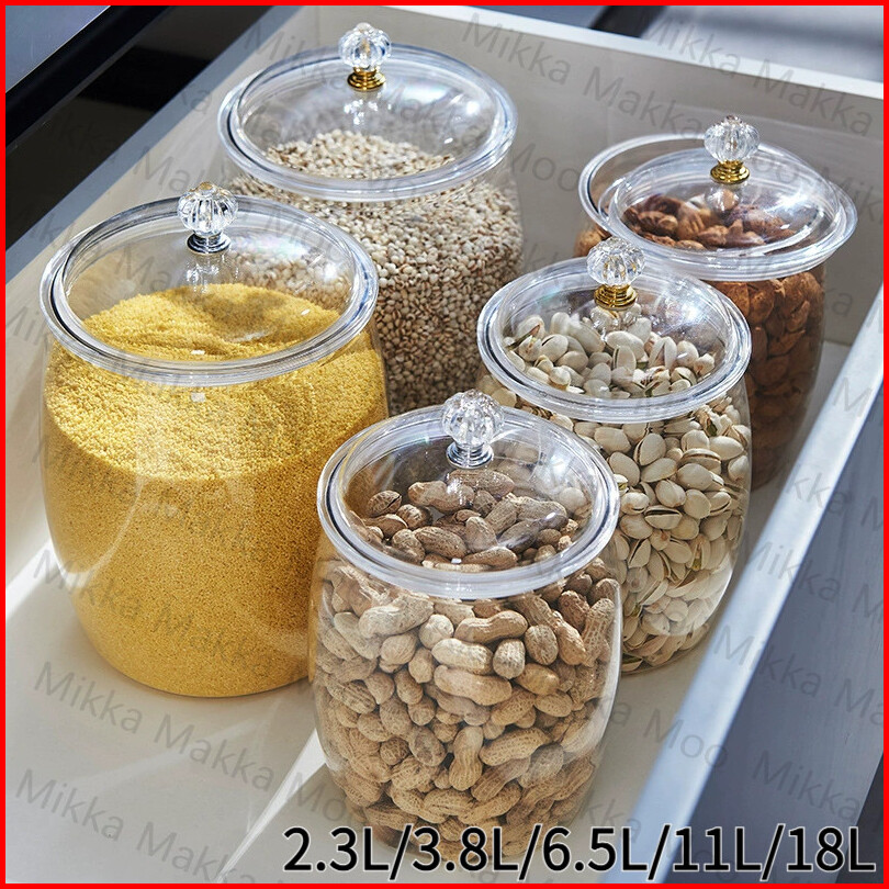 Wadah Plastik Kedap Udara Anti Bocor Transparan Toples Penyimpanan Bumbu Makanan Kapasitas Besar 2.3l 3.8l 6.5l 11l 18l