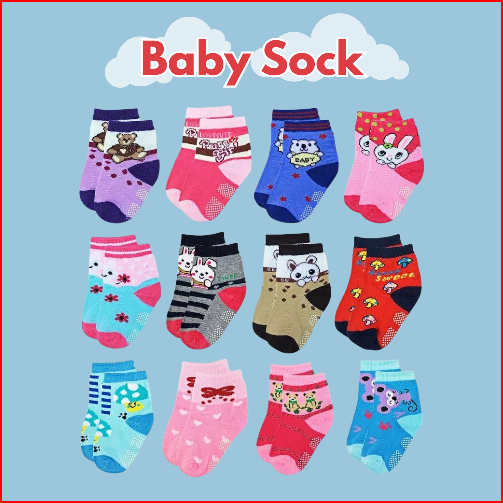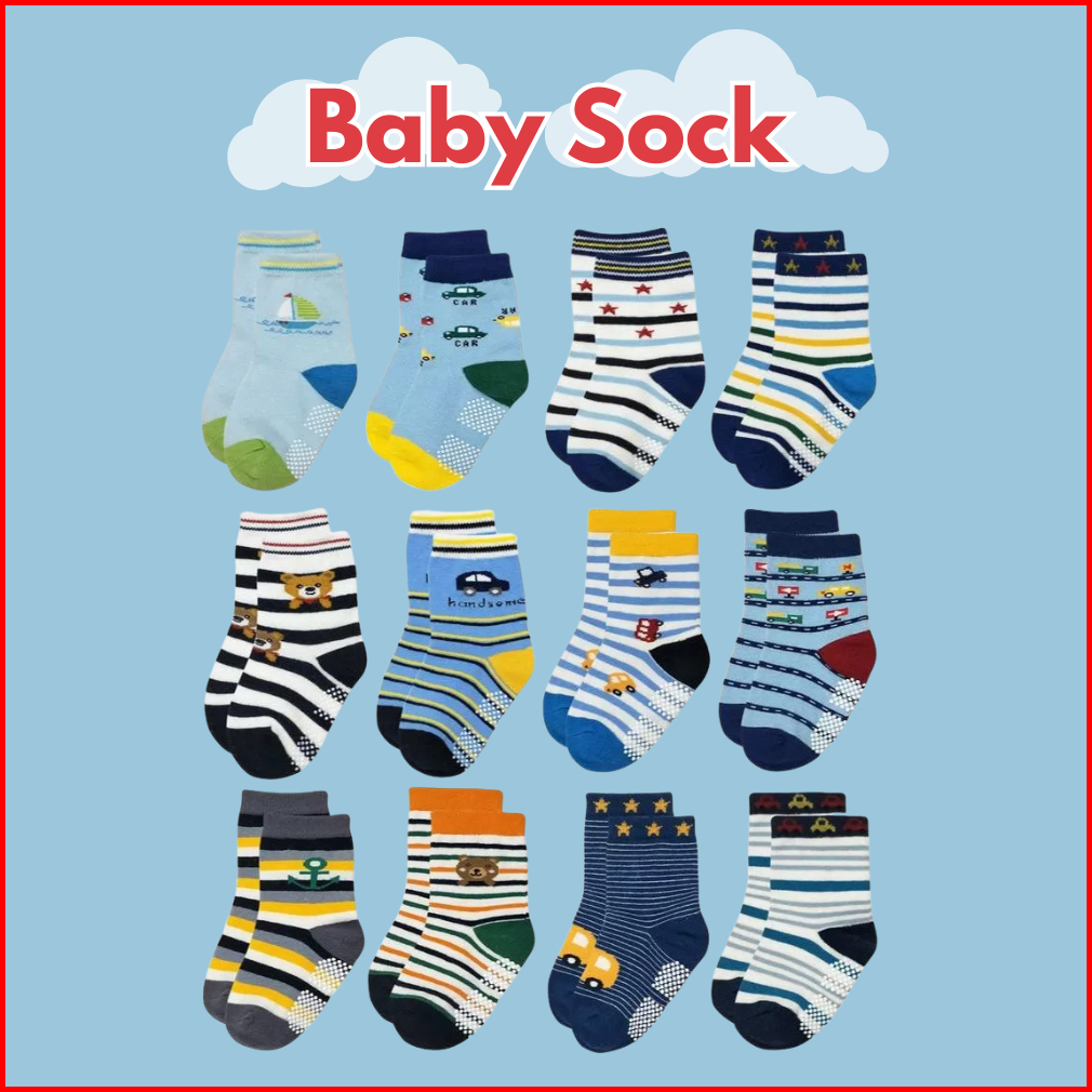 Paket 6 Pasang Kaos Kaki Anak Bayi Balita Laki Laki Perempuan Nyaman Dipakai Motif Karakter Lucu