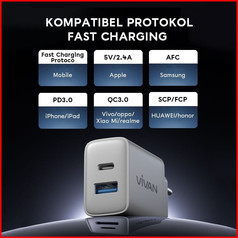 New Vivan Charger 20w Fast Charging Pd Qc 3.0 Type-c Usb A Output 3a Power C21 Garansi 12 Bulan