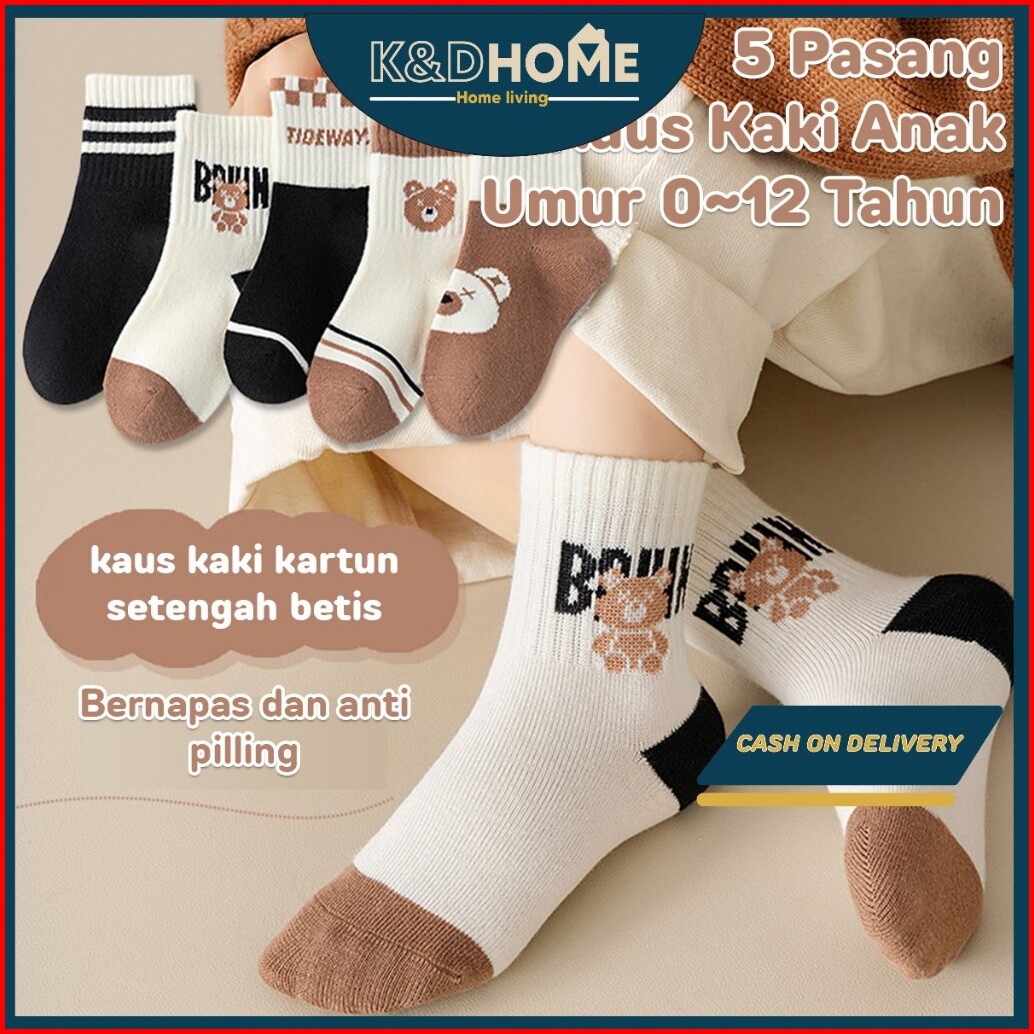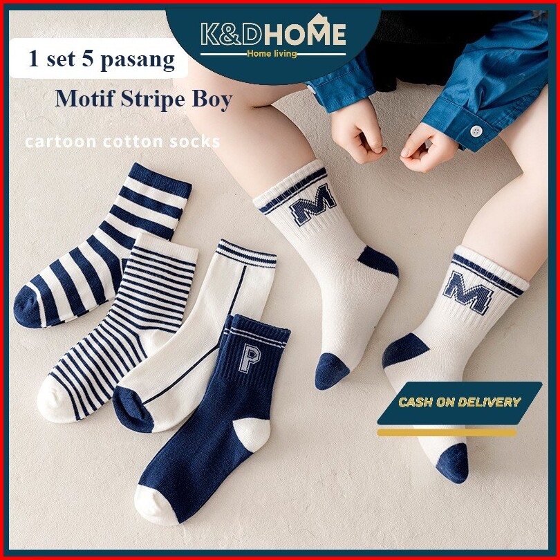Kiddy Home 5 Pasang Kaos Kaki Anak Olahraga Laki Laki Perempuan Umur 1 - 12 Tahun