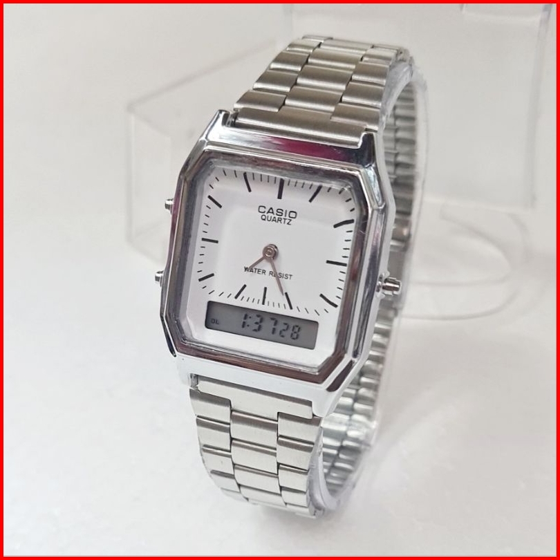 Casio Dual Time Jam Tangan Wanita Stainless