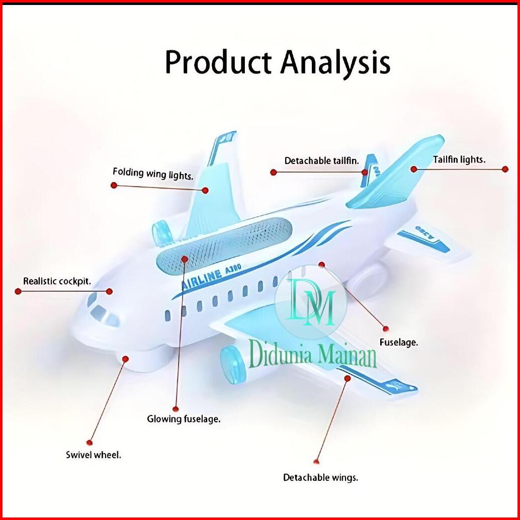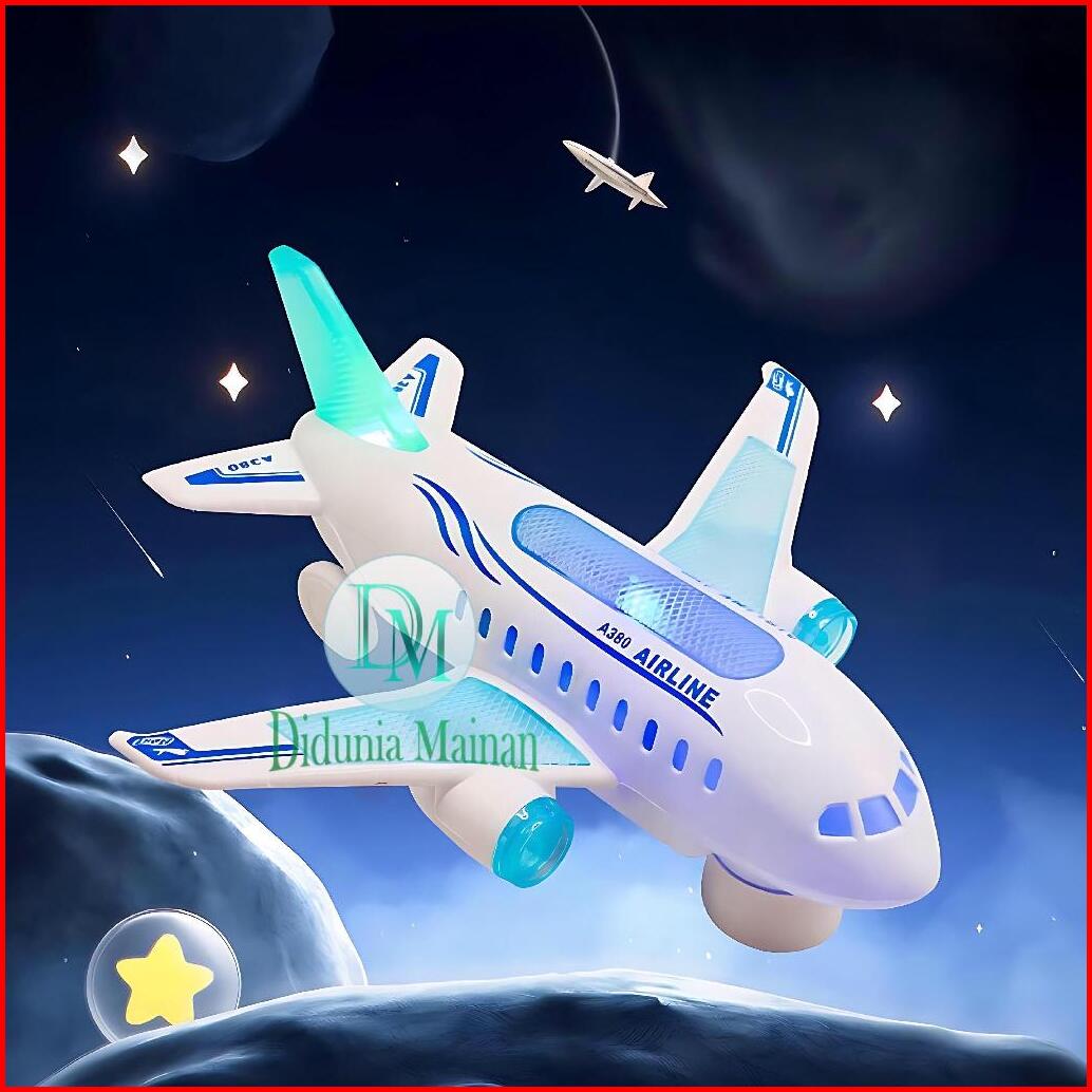 Mainan Anak Pesawat Terbang Umroh Airbus A380 Airplane Bump And Go Lampu Suara Musik Islami
