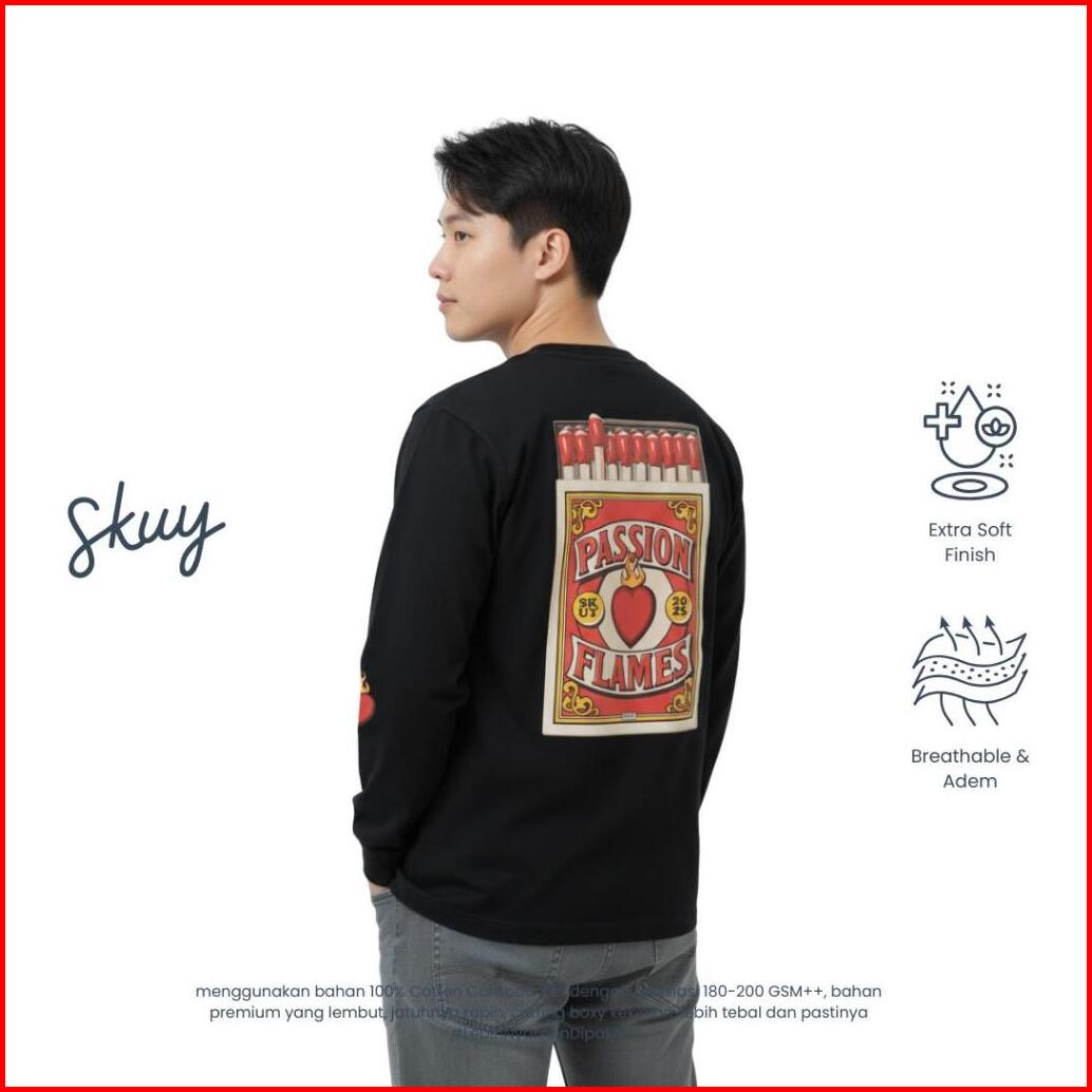Skuy Longsleeve Kaos Dewasa Lengan Panjang Pria Warna Hitam Bahan Fit Cotton Combed 24s Nyaman Kerah Bulat Skyls30-h