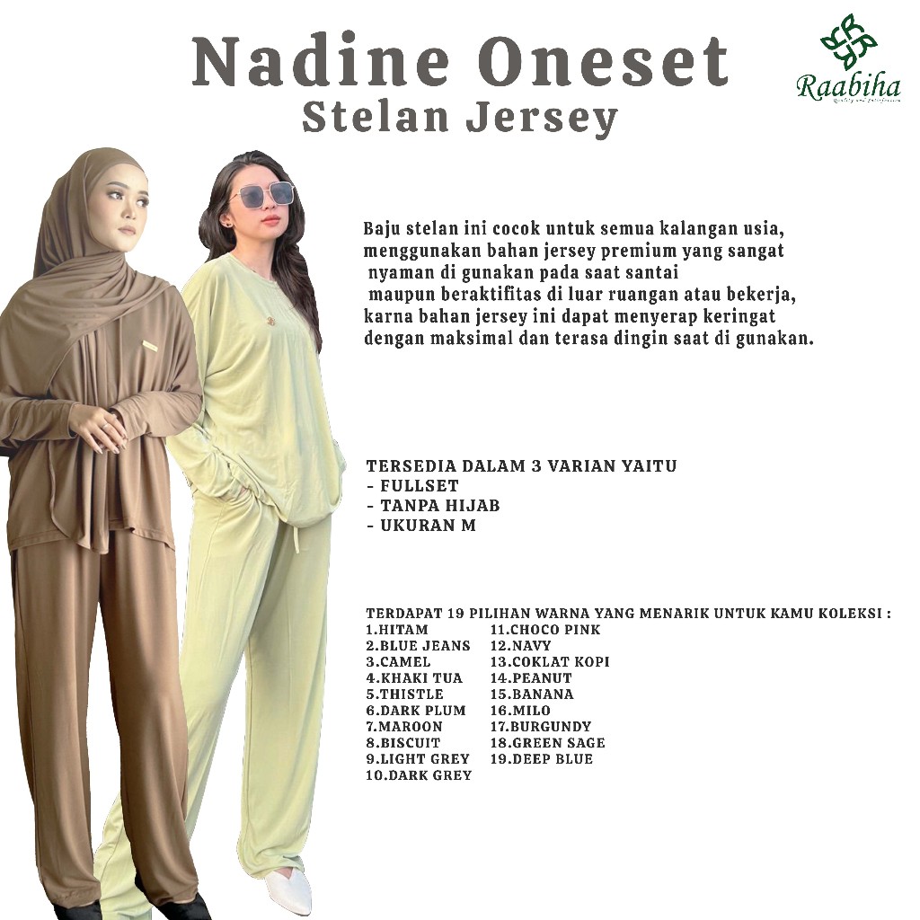 RAABIHA | Basic Nadine | Oneset Jersey Premium | Setelan Wanita Muslim Wudhu Friendly, Adem, Anti Kusut, Longgar & Elegan
