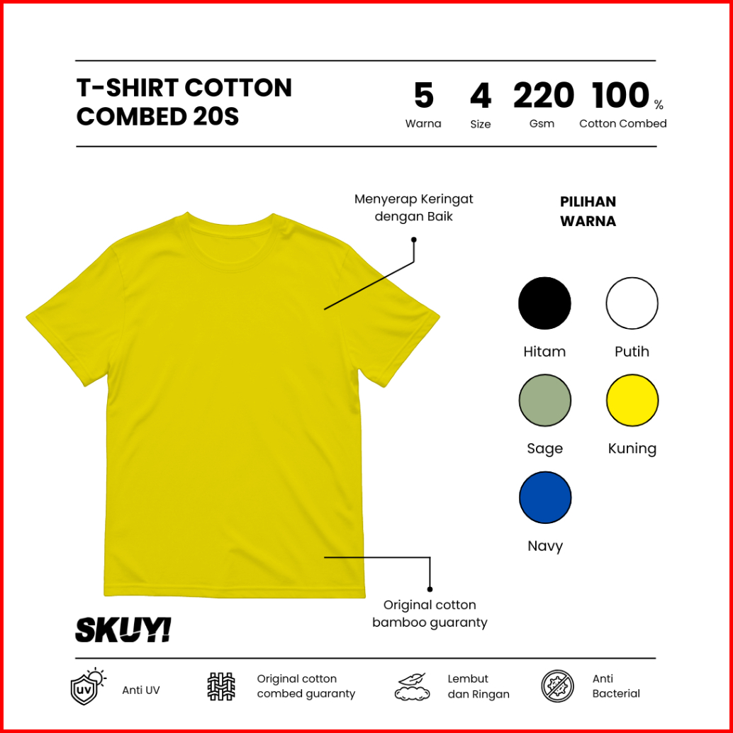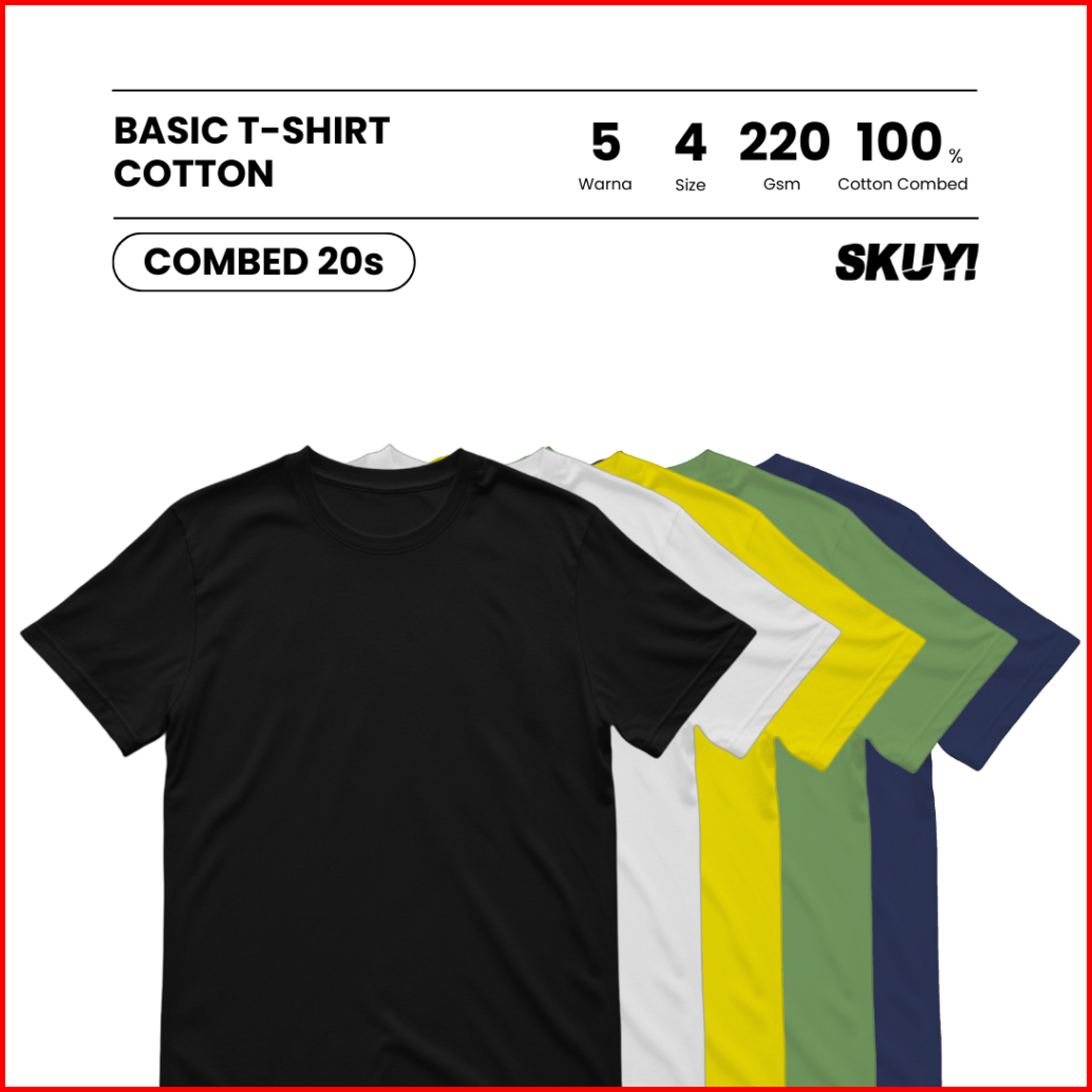 Kaos Polos 20s Cotton Combed - Baju Pria Wanita Premium Adem Tebal - Skuy