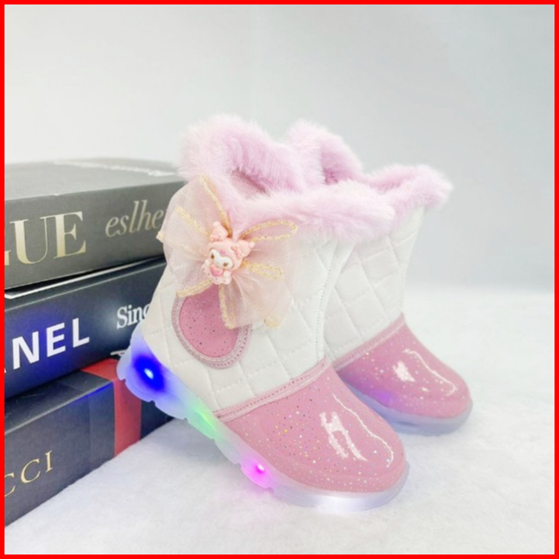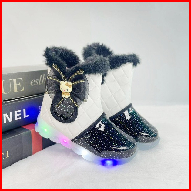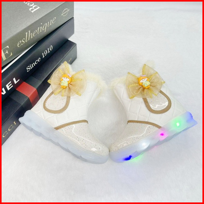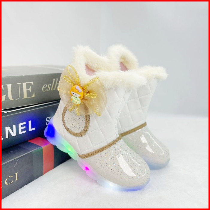 Renni - Sepatu Boots Led Anak Perempuan Pita Boneka Sepatu Anak Menyala Ibled03