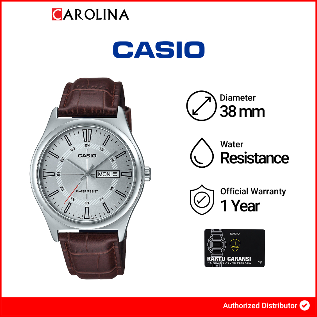 Jam Tangan Pria Casio General Mtp-v006l-7c Silver Dial Brown Leather Band