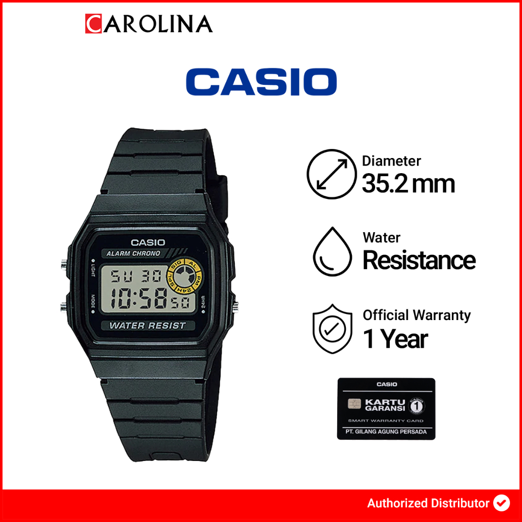 Jam Tangan Pria Casio General Vintage Series F-94wa-8d Digital Dial Black Resin Band