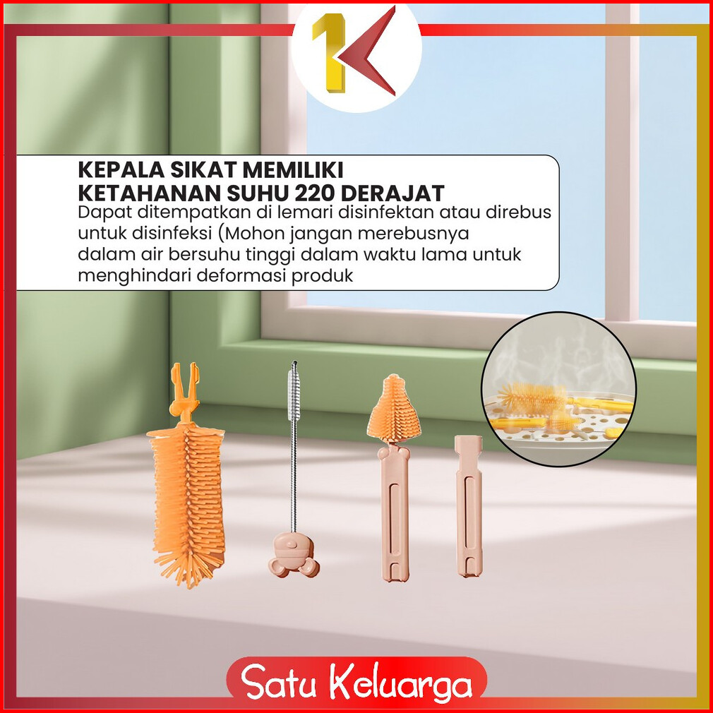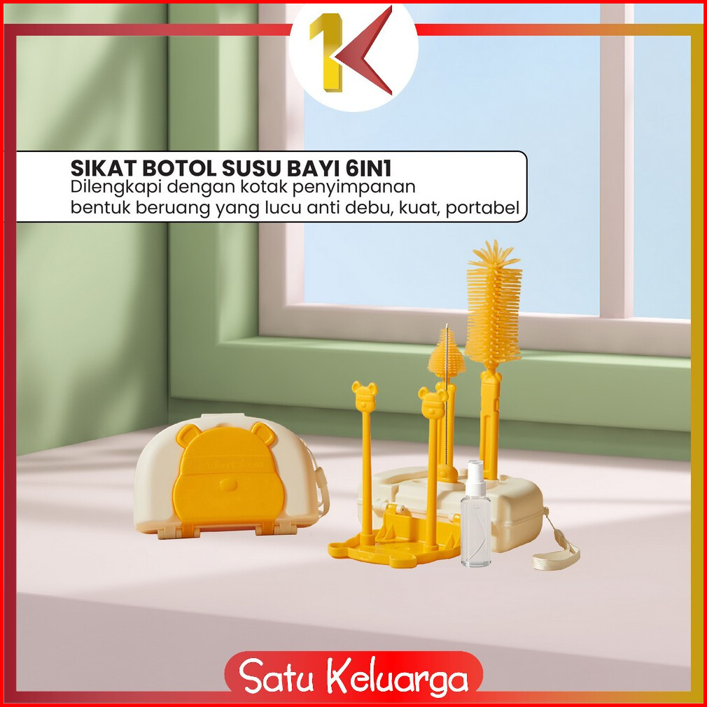 Sk-c1069 Sikat Botol Susu Bayi 6in1 Dengan Rak Pengering Botol Portable Set Bottle Brush Set Drying Rack Bear Travel