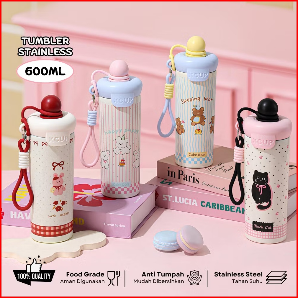 Ready Tumbler Bottle Stainless Steel 600ml Botol Minum Anak Sedotan Cute