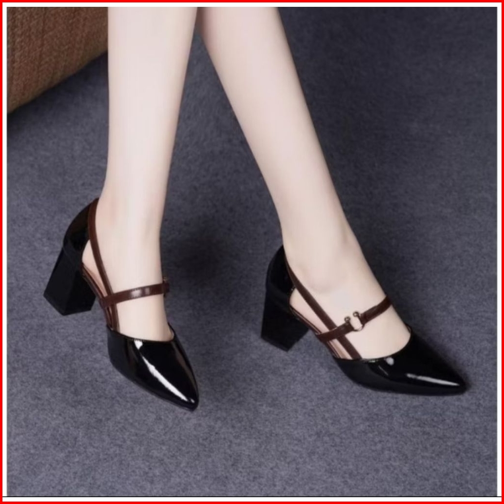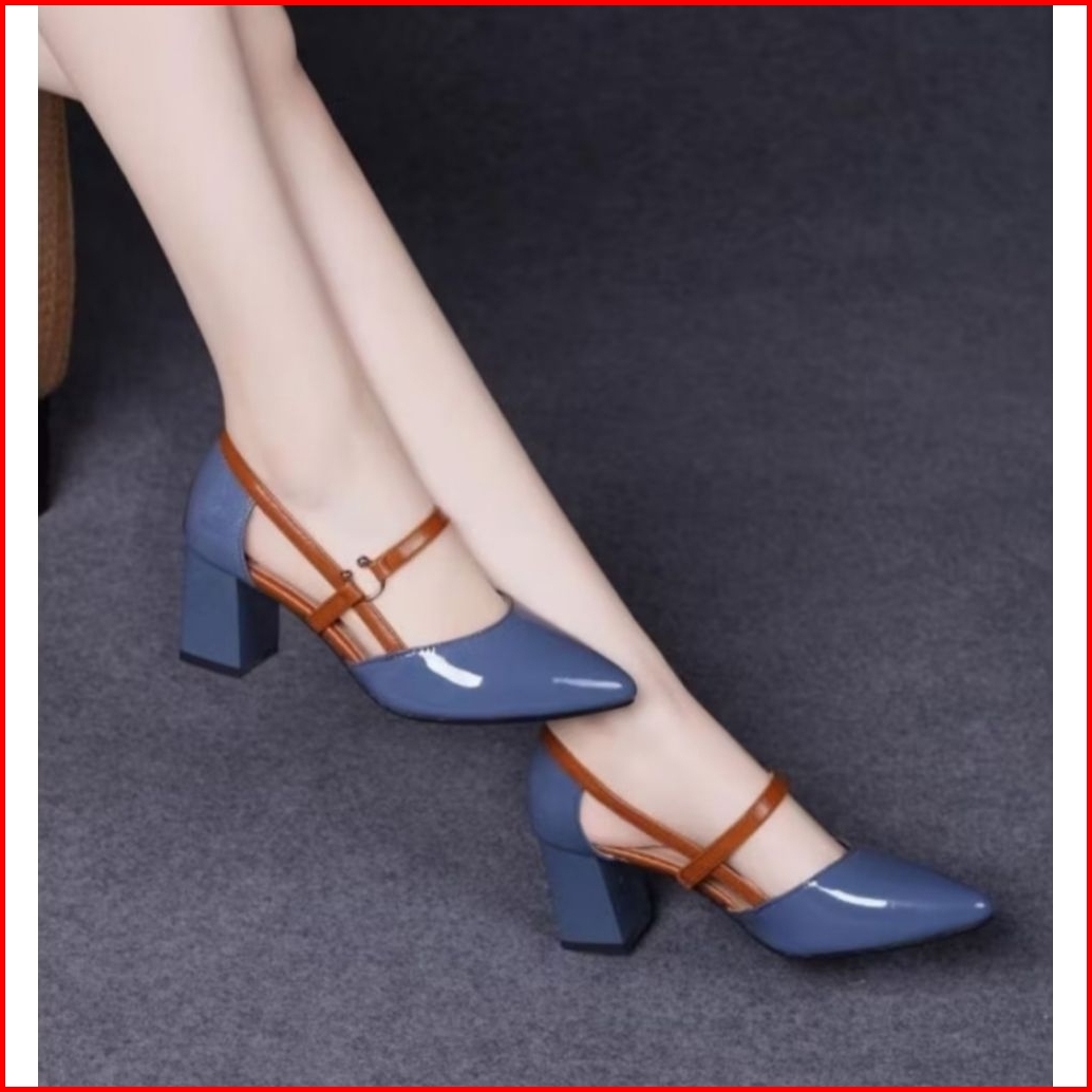 Sepatu Fantopel Wanita Heels Tali Slop Belakang 5cm Wanita Ir02