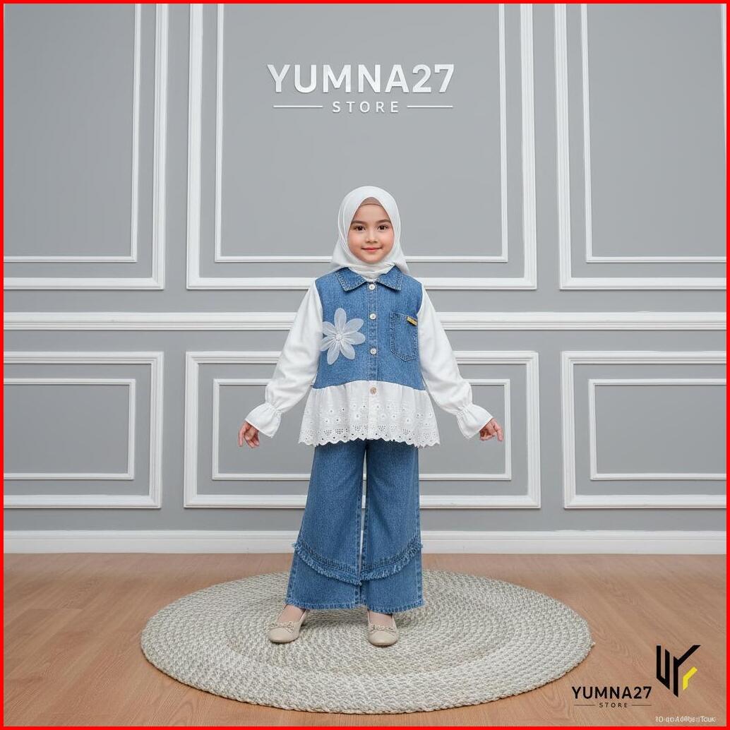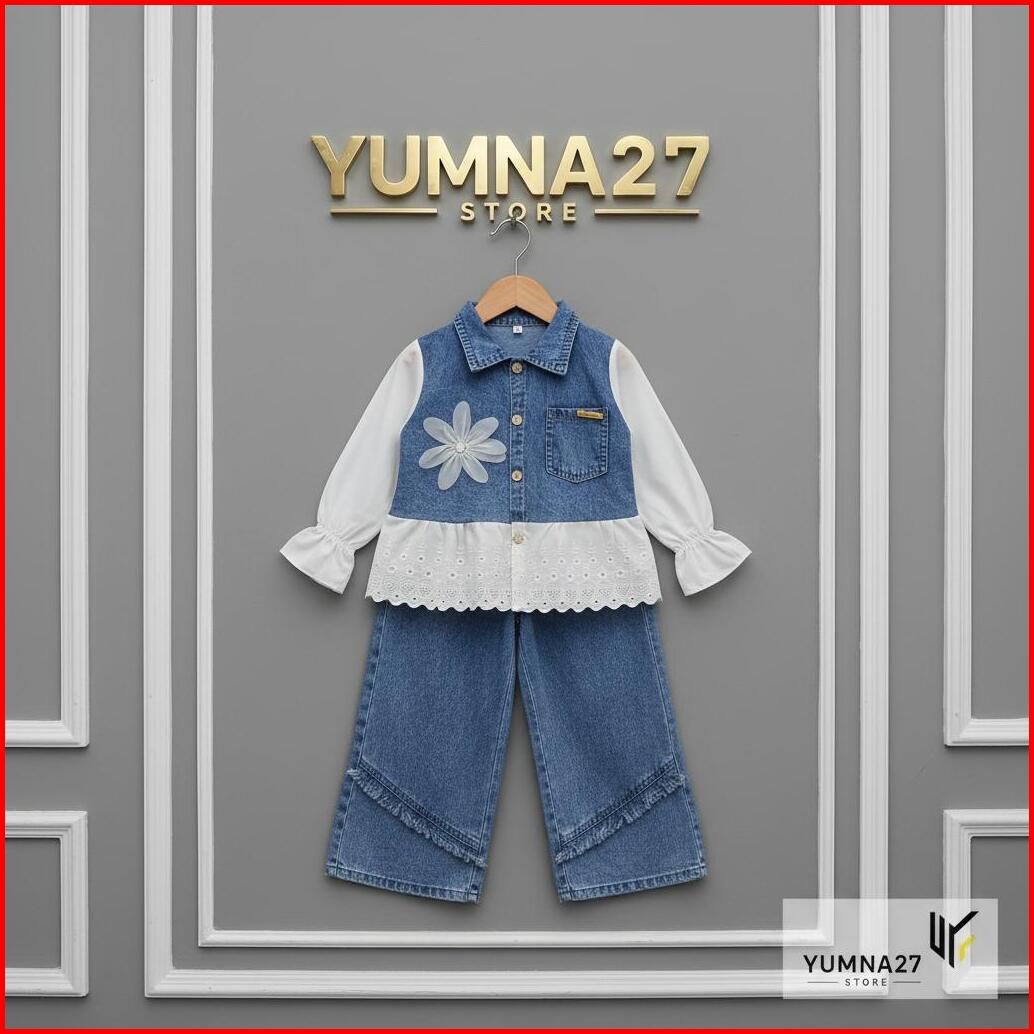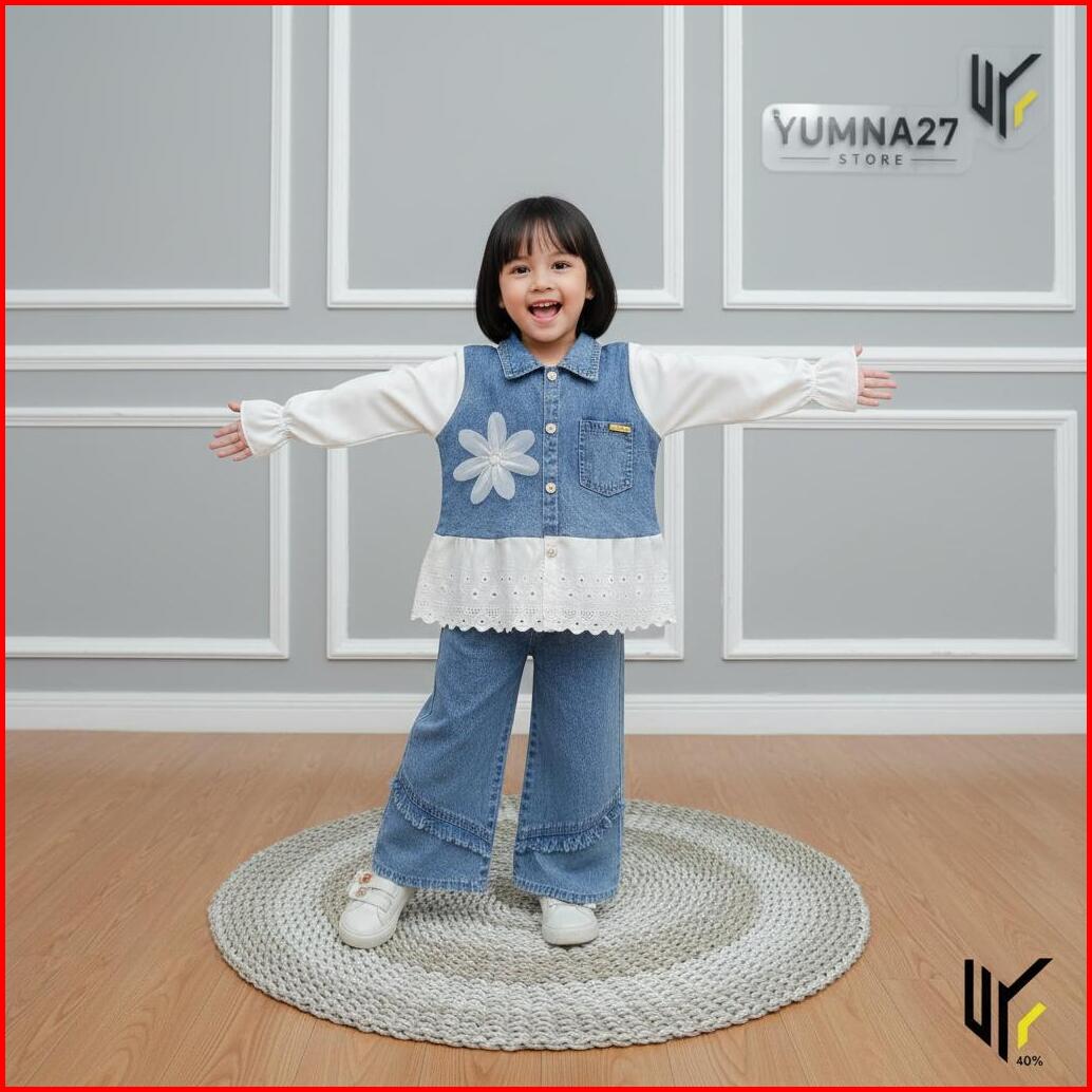 Yumna27 Setelan Jeans Anak Perempuan Kulot Renda Premium 3-9 Tahun Baju Fashion Anak Cewek Model Terbaru