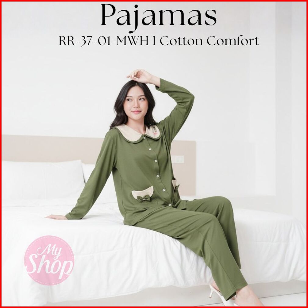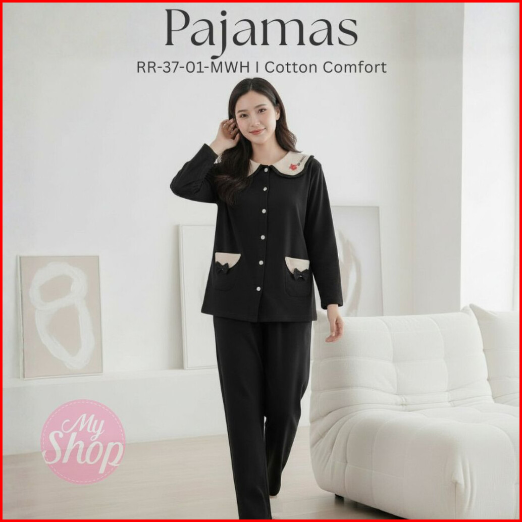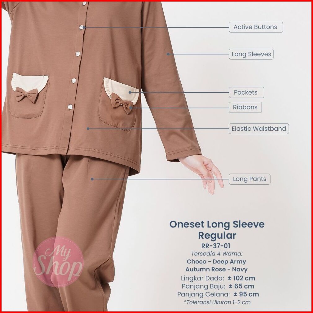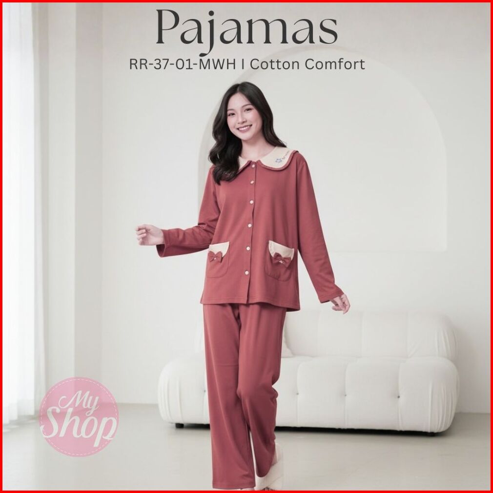 Oneset Piyama Wanita Kaos Adem Tangan Panjang Celana Panjang Regular Size Kancing Full Forever Sweet