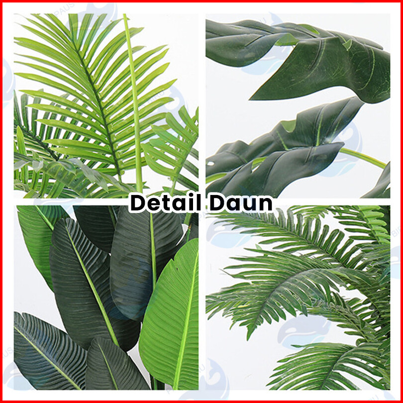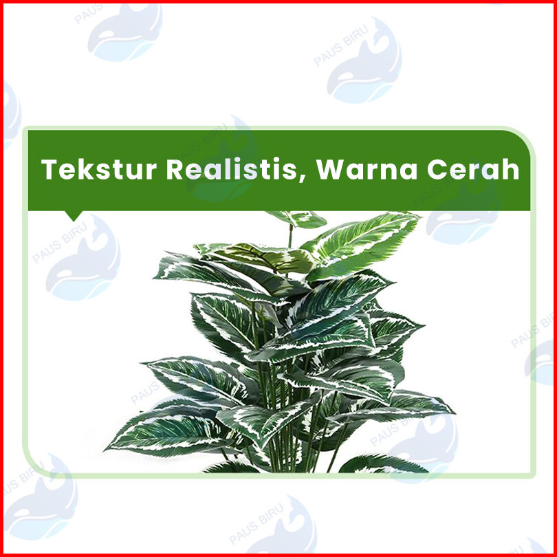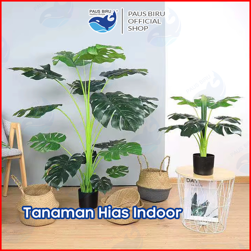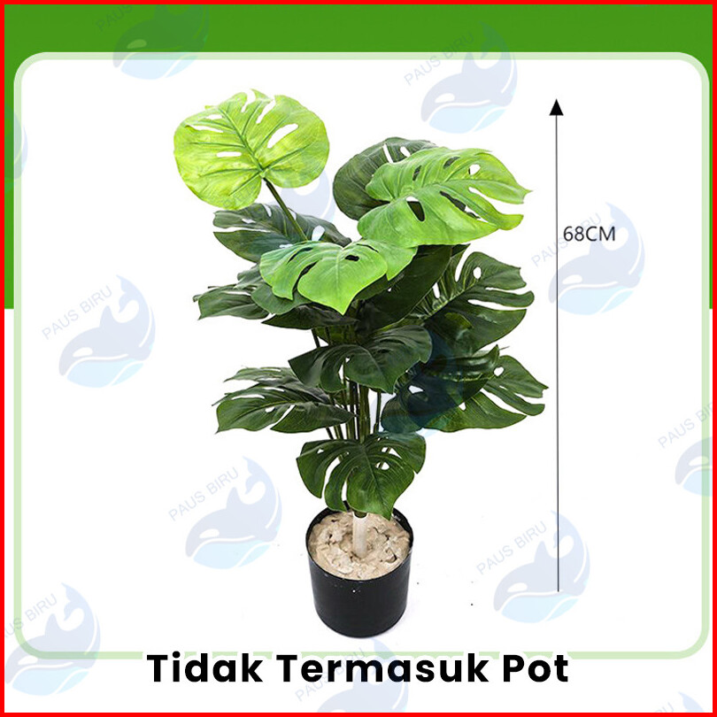 Paus Biru - Tanaman Palsu Artifisial 18 Cabang Daun Monstera Hijau Ukuran Jumbo Pot Bunga Dekorasi Hias Ruangan Kantor R