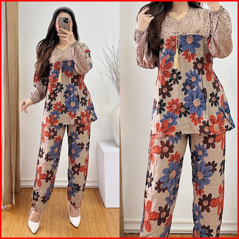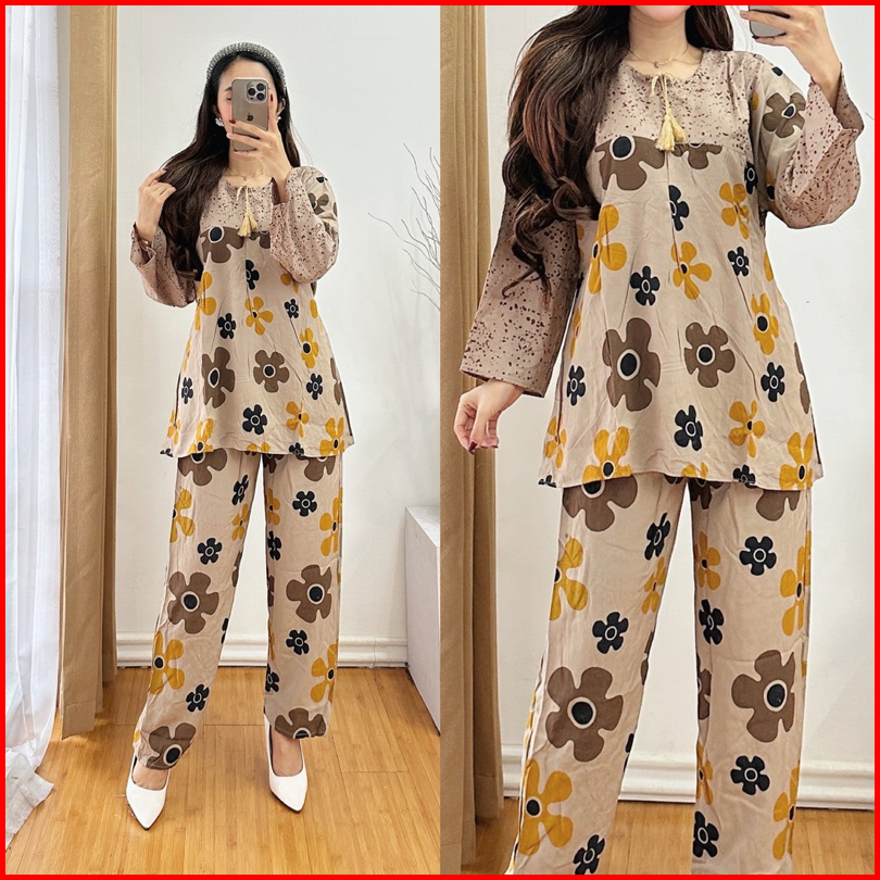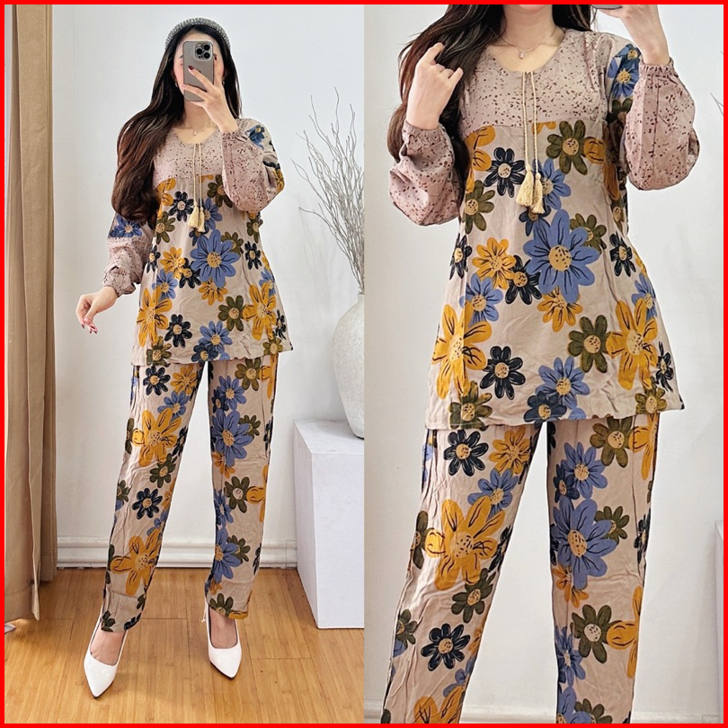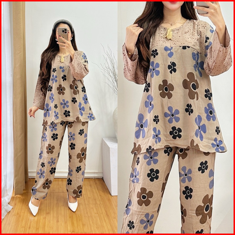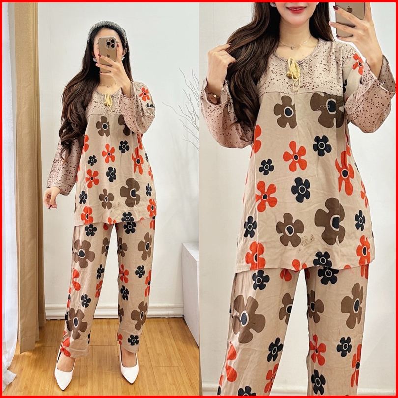 One Set Lengan Panjang Ld 115 Motif Bunga Dahlia Setelan Dewasa Ld 115 Motif Kekinian