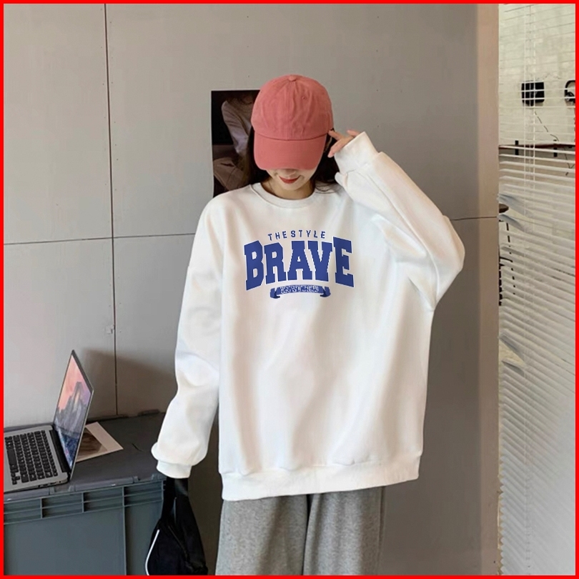 Forteid Sweater Lengan Panjang Oversized Street Style Korean Style Switer Wanita Oversize Kaos Pola Braye Korean Style S
