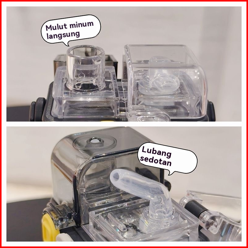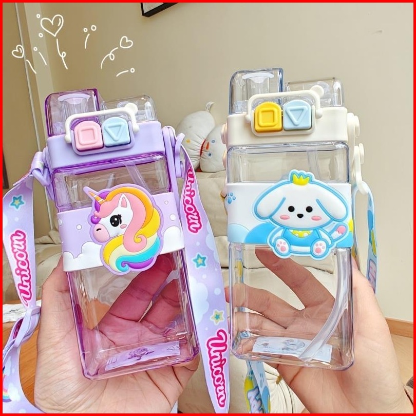 Botol Unik Plastik Kotak Transparan Lucu 2 Cara Minum Tali Panjang Dengan Pengunci 480ml